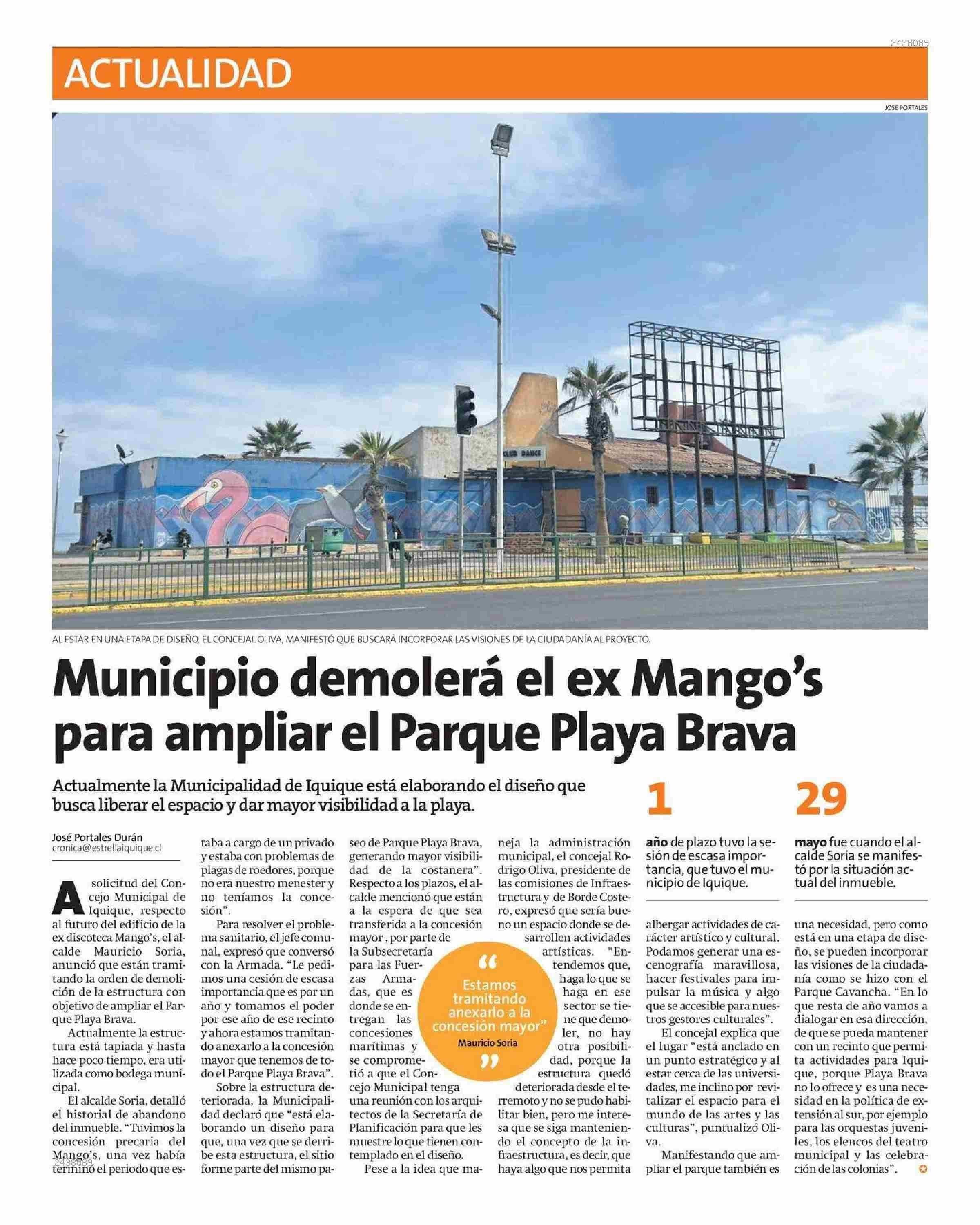 Municipio demolerá el ex Mango's para ampliar el Parque Playa Brava 12-06-2025 La Estrella de Iquique |