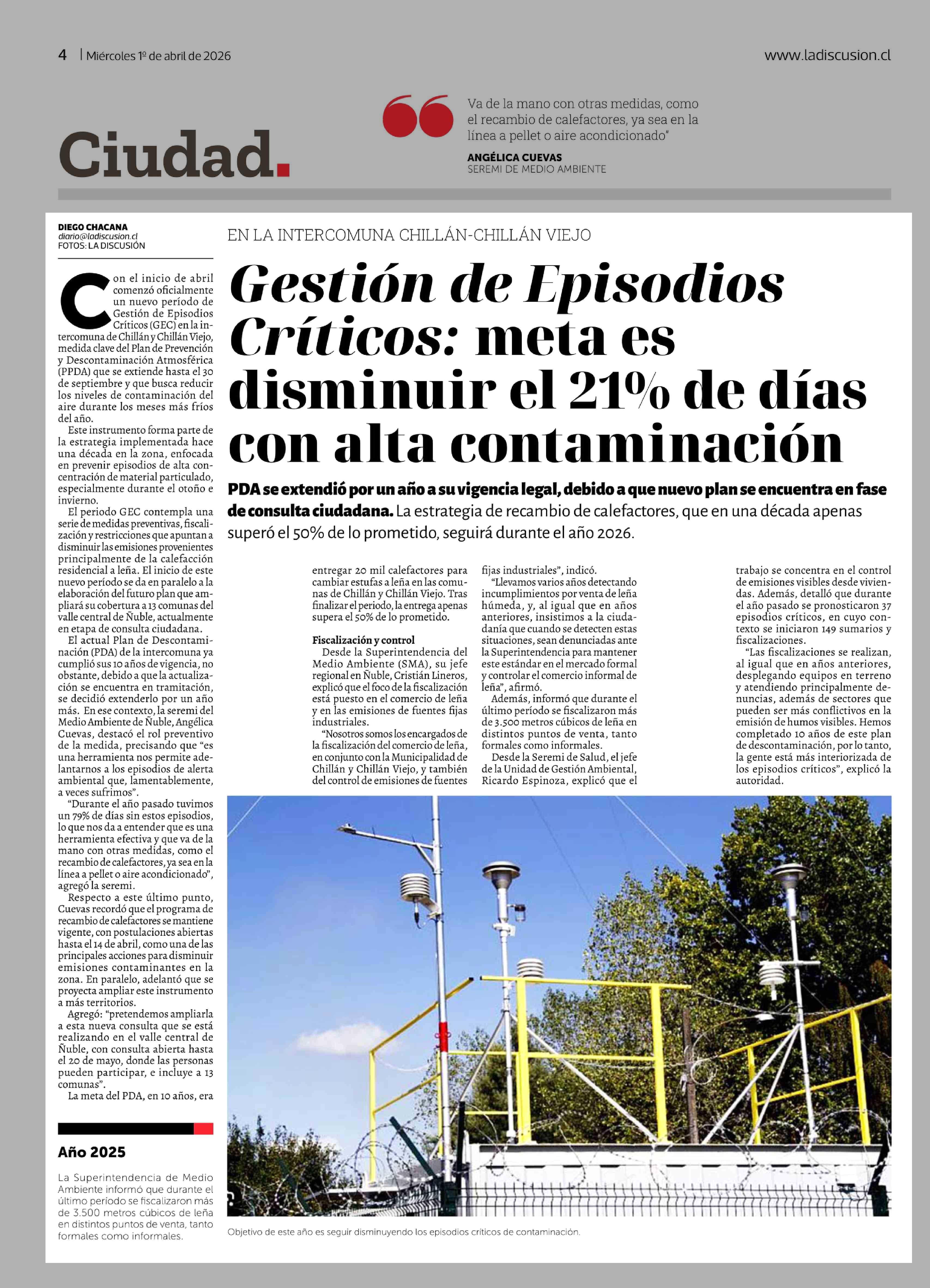 Gestión de Episodios Críticos: meta es disminuir el 21% de días con alta contaminación 01-04-2026 La Discusión |