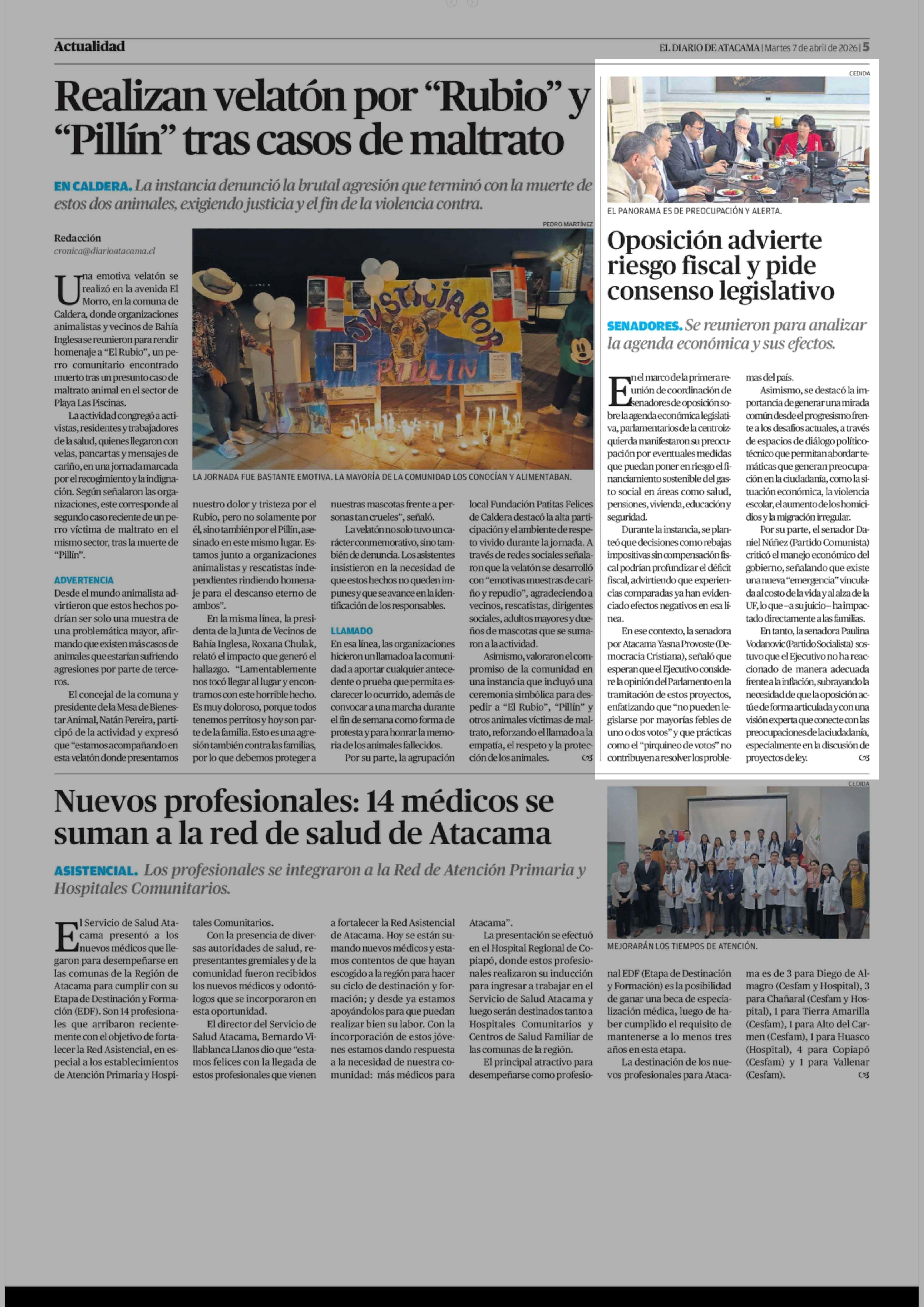 Oposición advierte riesgo fiscal y pide consenso legislativo 07-04-2026 El Diario de Atacama |