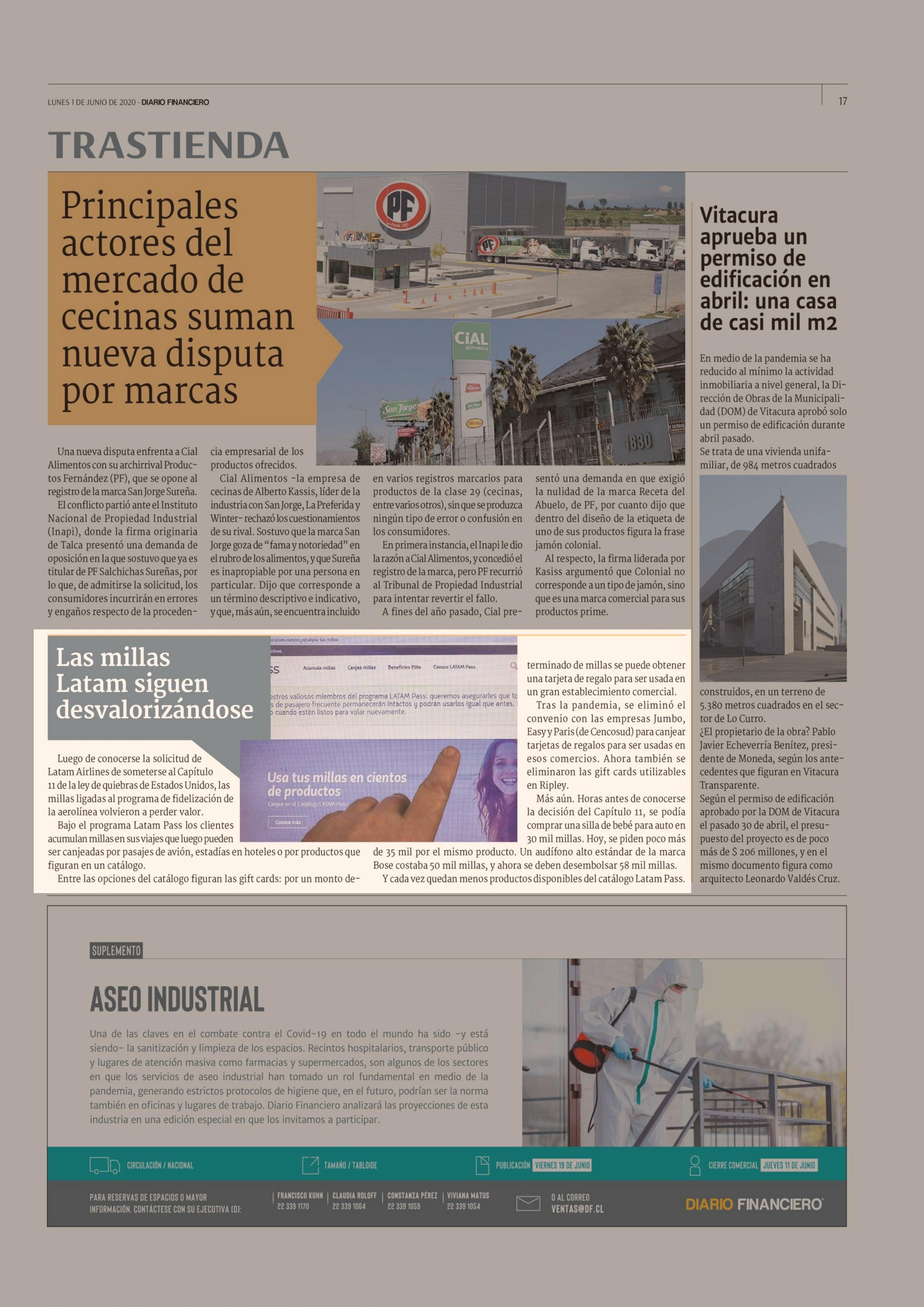 Las millas Latam siguen desvalorizándose 01-06-2020 Diario Financiero |