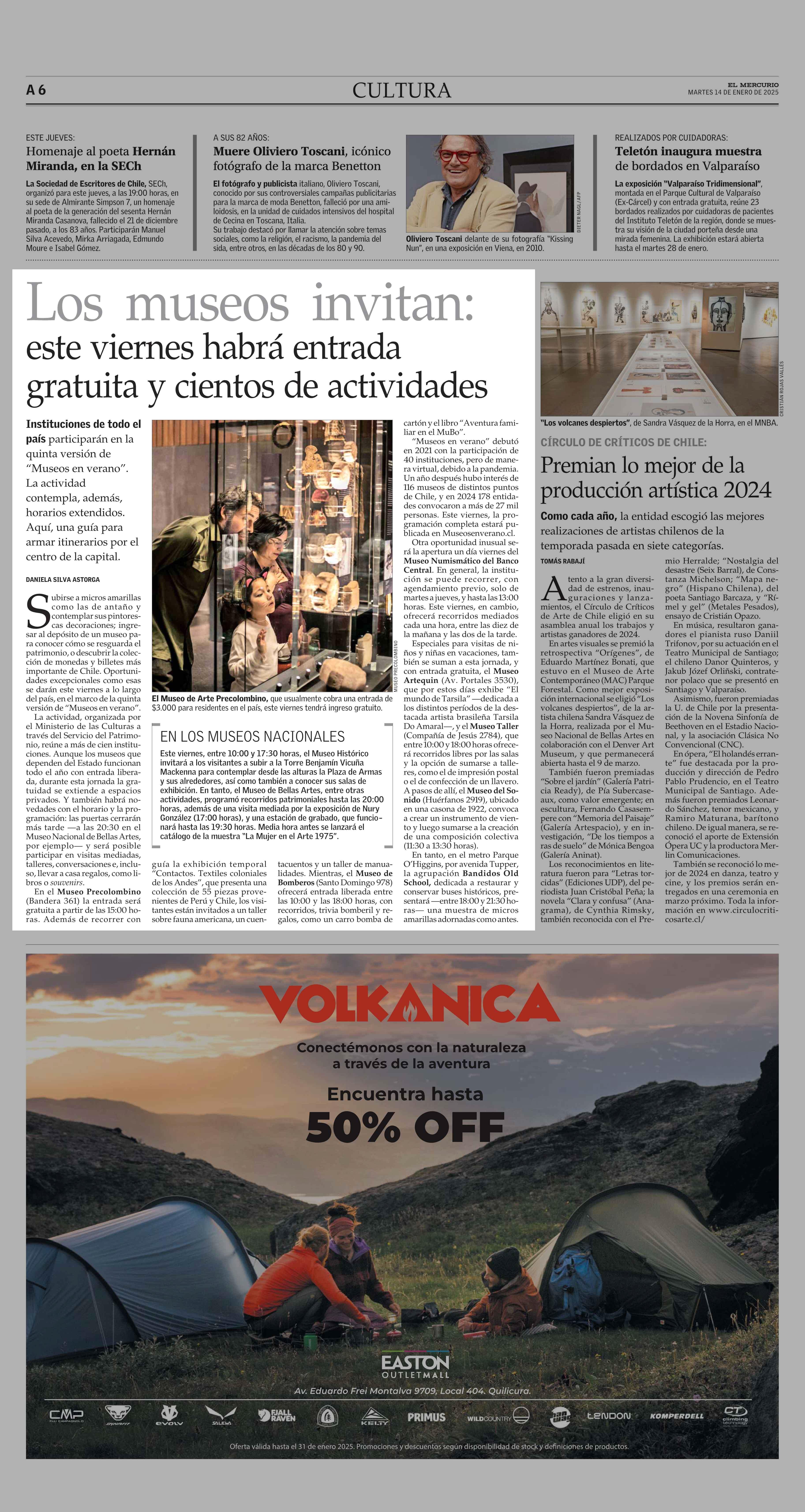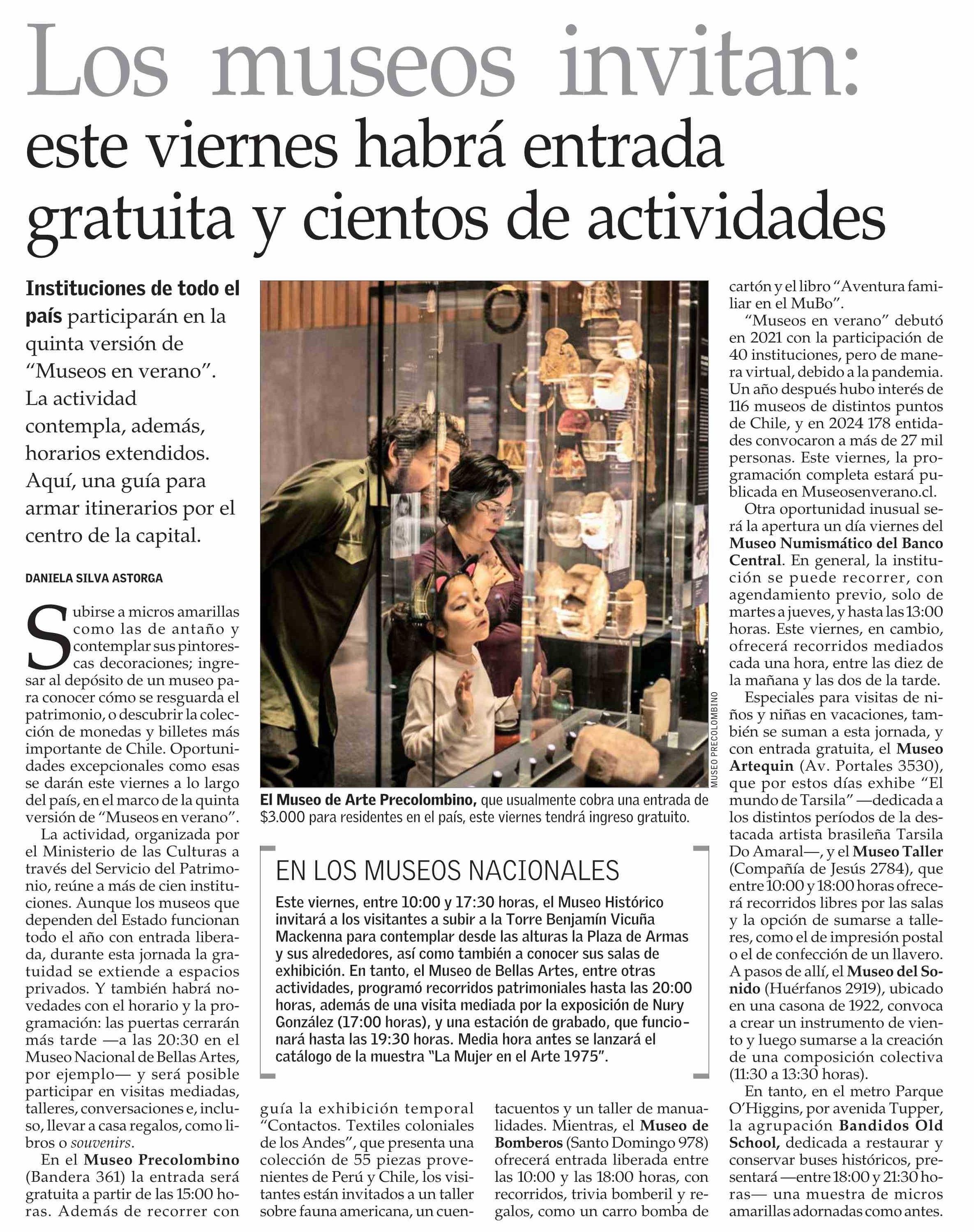 Los museos invitan: este viernes habrá entrada eratuita y cientos de actividades 14-01-2025 El Mercurio |