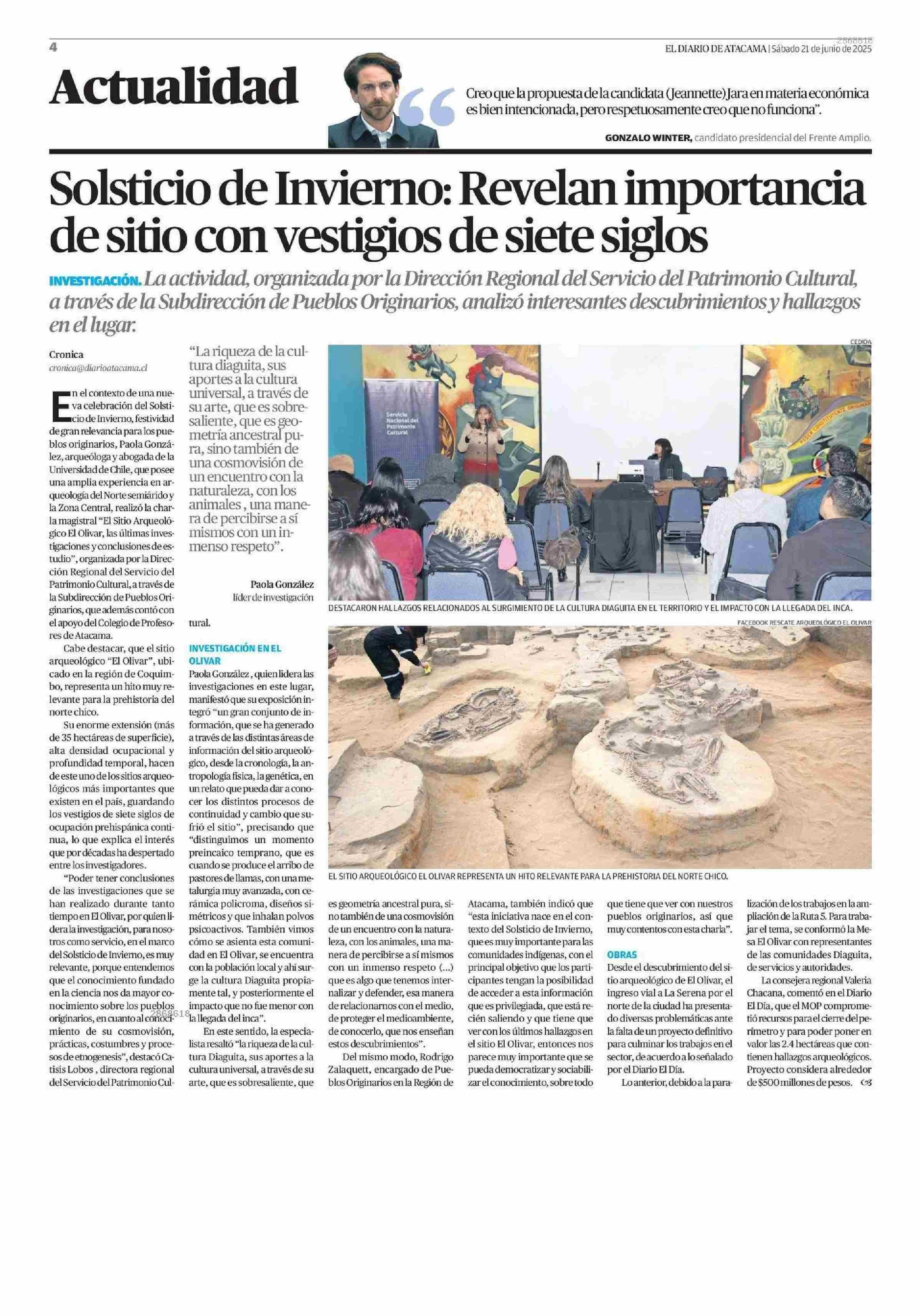 Solsticio de Invierno: Revelan importancia de sitio con vestigios de siete siglos 21-06-2025 El Diario de Atacama |
