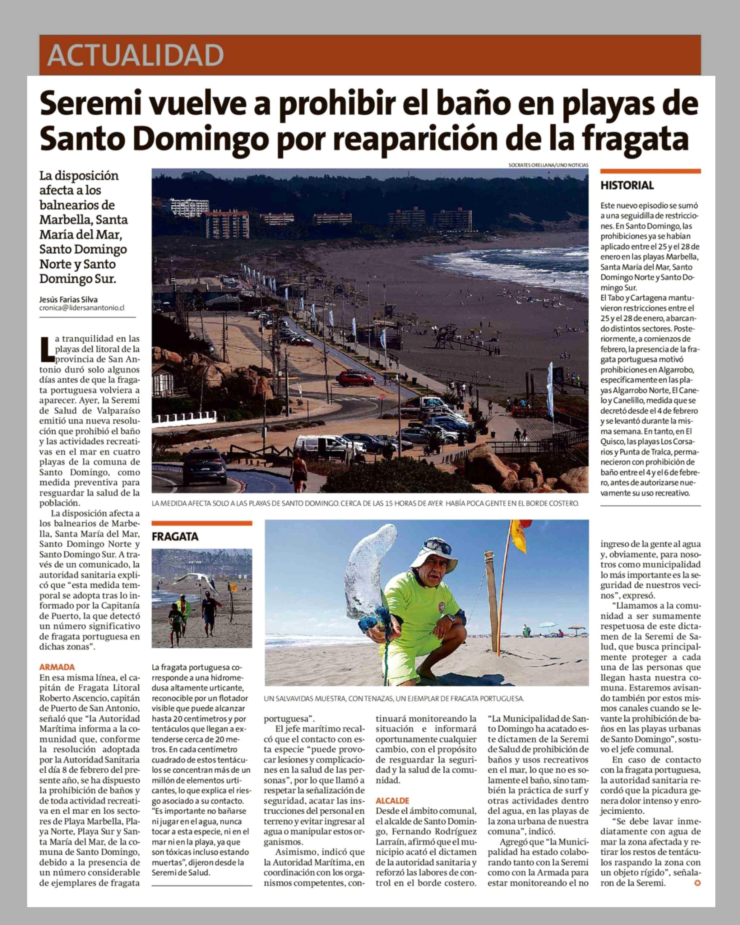 | Título: | Seremi vuelve a prohibir el baño en playas de Santo Domingo por reaparición de la fragata |