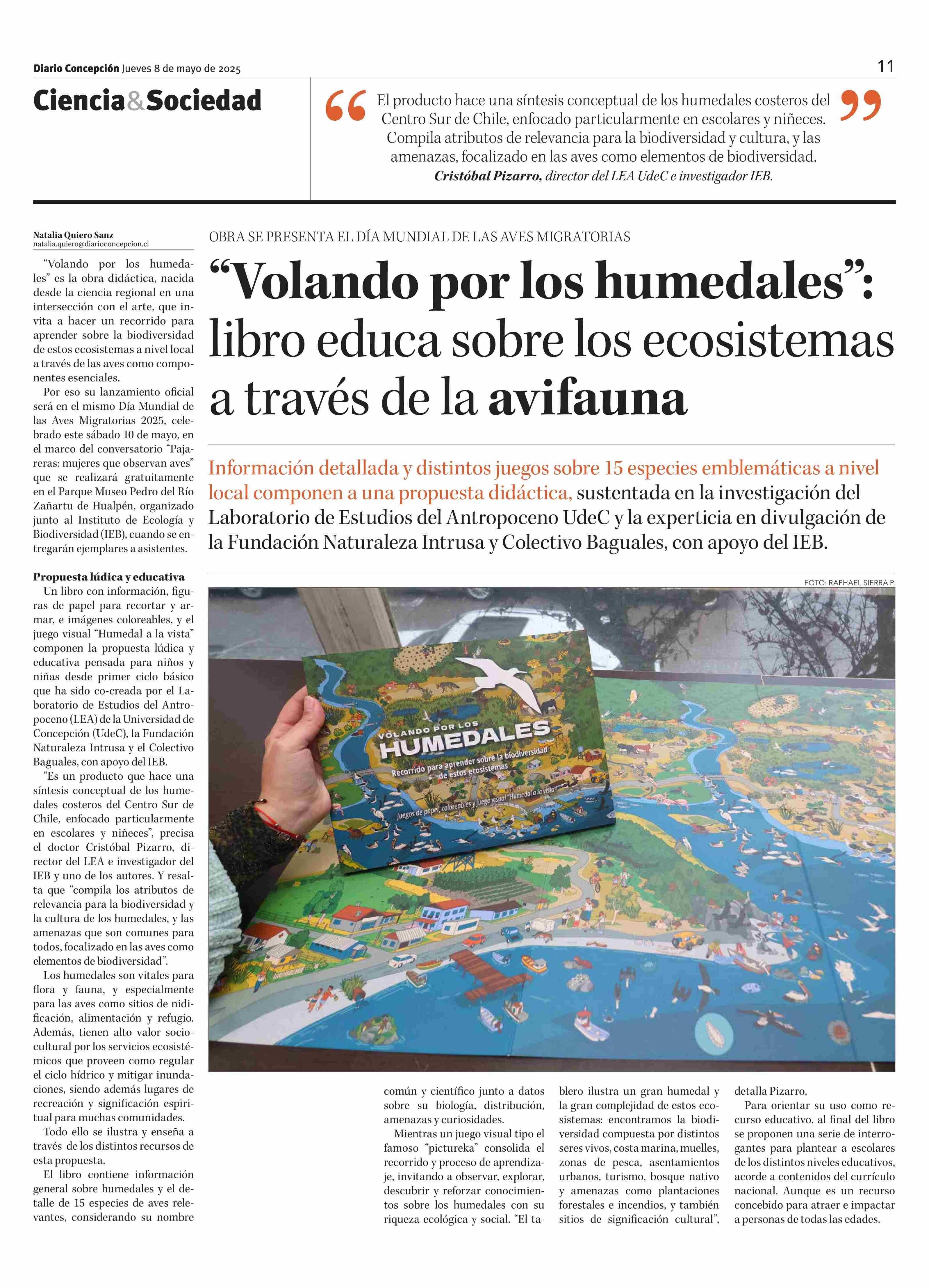 "Volando por los humedales": libro educa sobre los ecosistemas a través de la avifauna 08-05-2025 Diario Concepción |