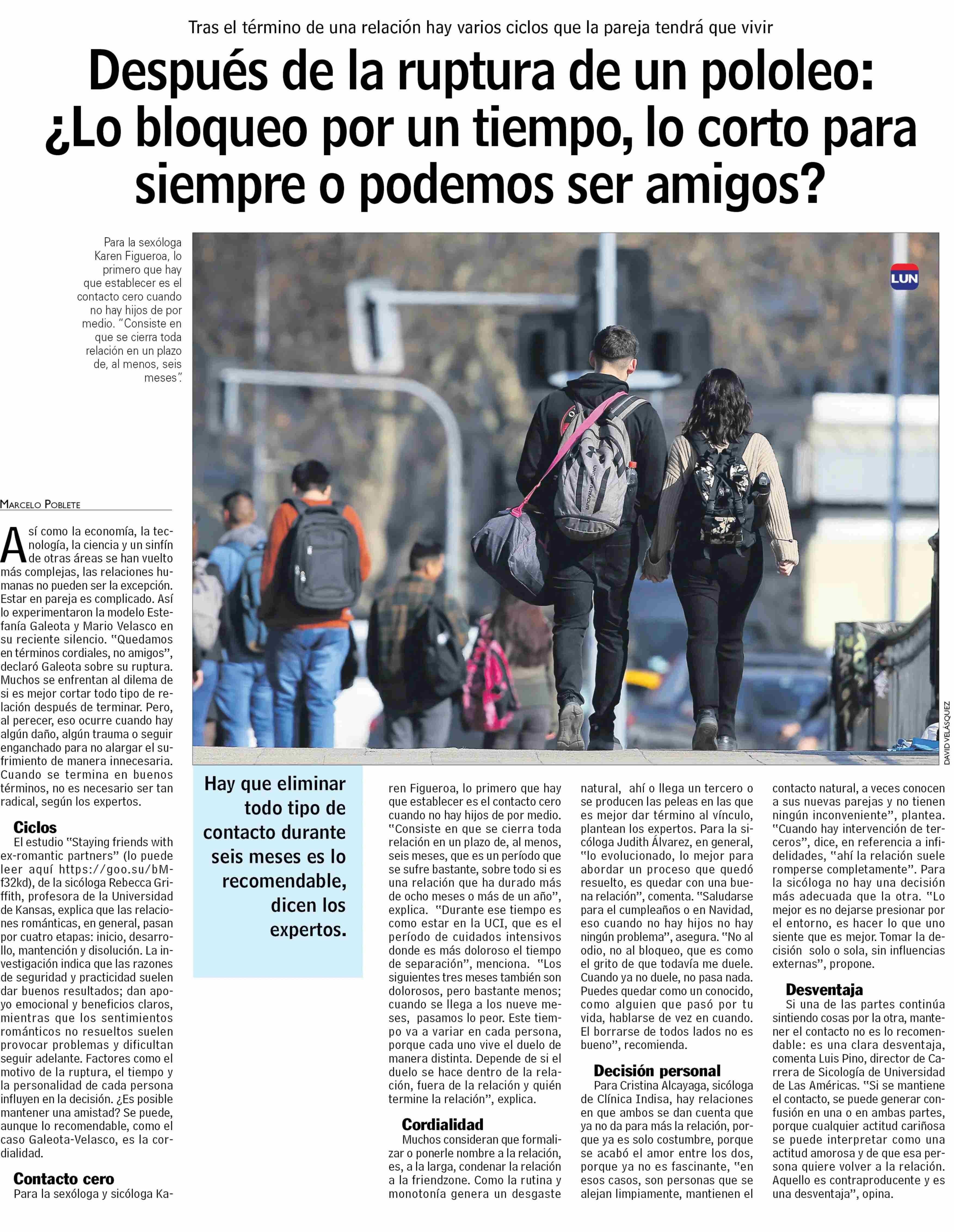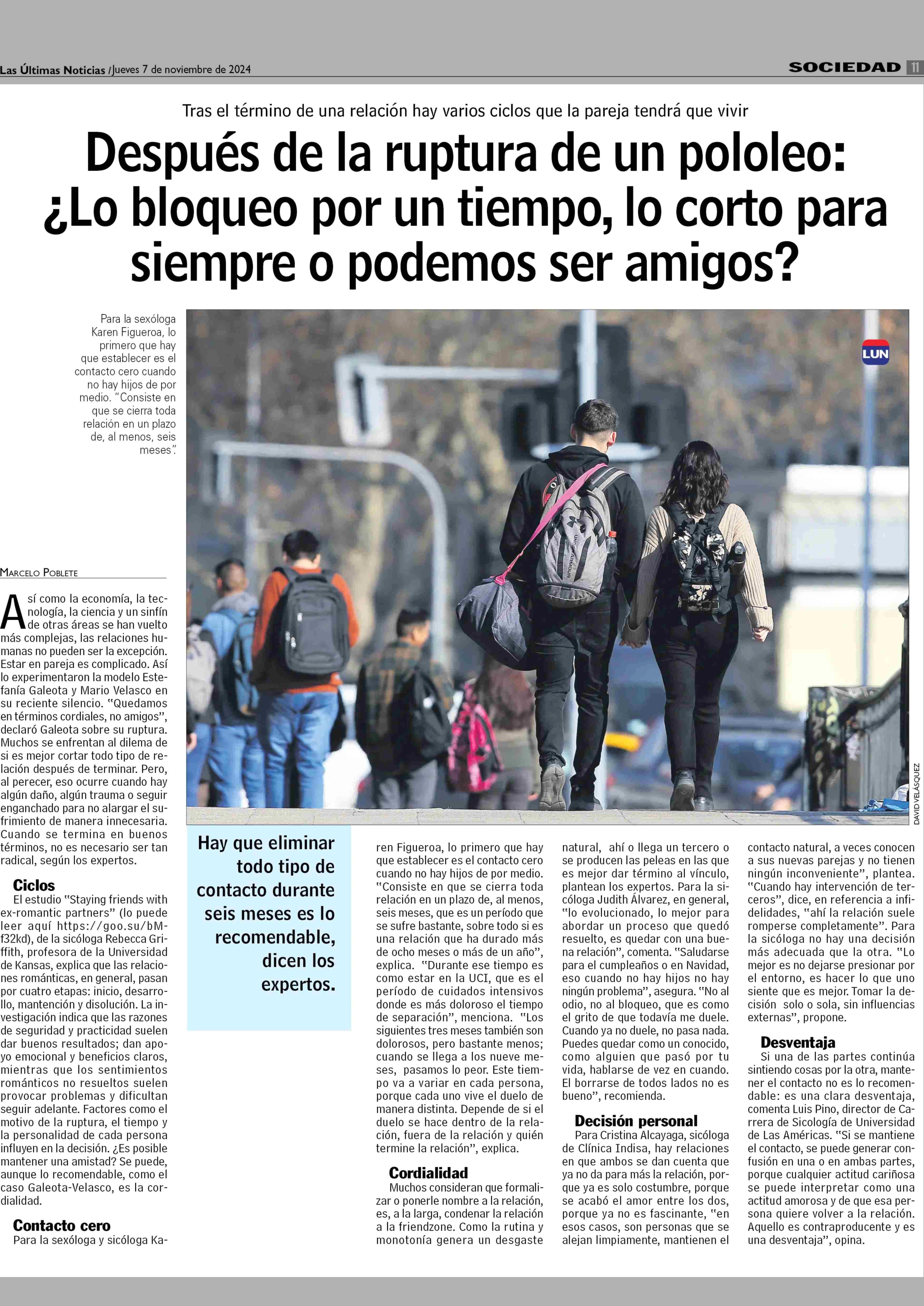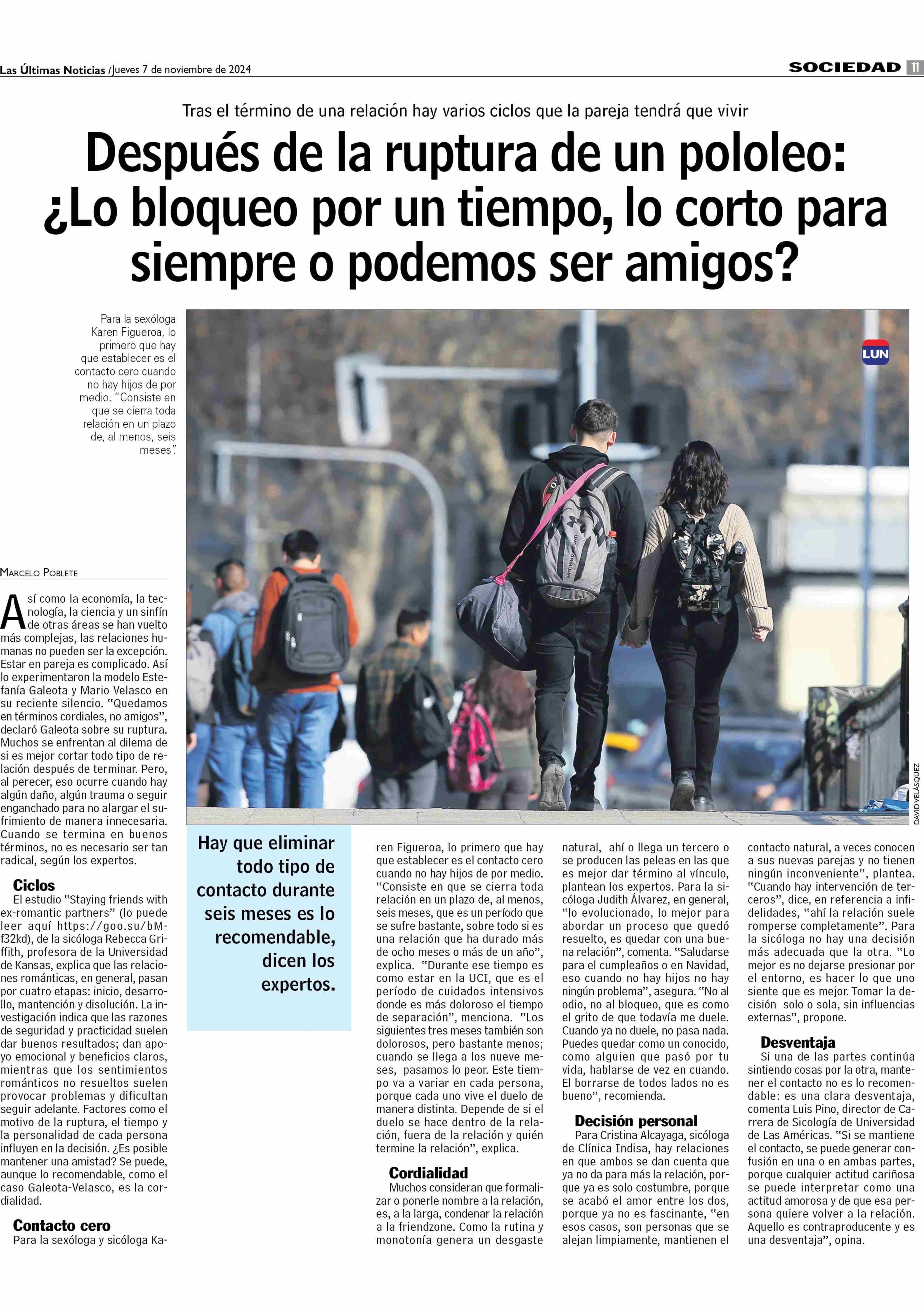 Después de la ruptura de un pololeo: ¿Lo bloqueo por un tiempo, lo corto para siempre o podemos ser amigos? 07-11-2024 Las Últimas Noticias |