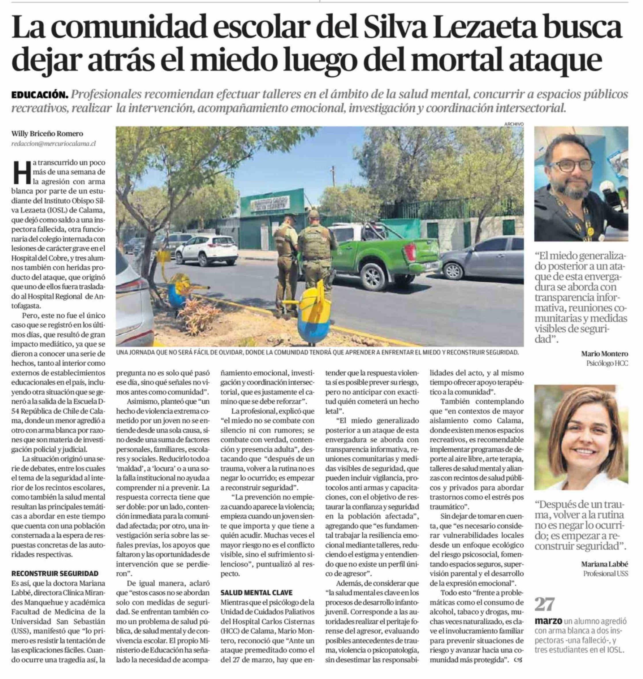 Título: La comunidad escolar del Silva Lezaeta busca dejar atrás el miedo luego del mortal ataque