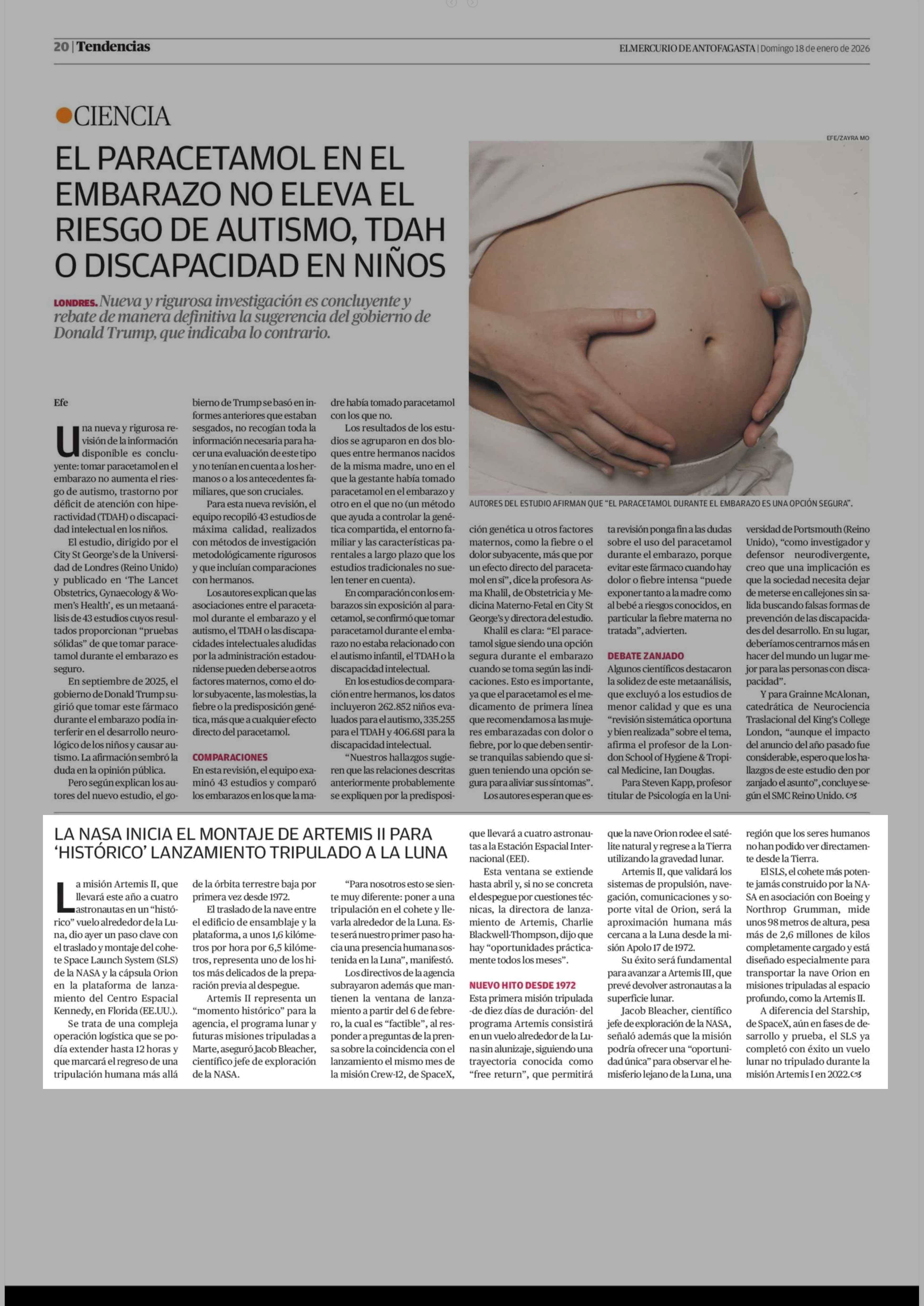 LA NASA INICIA EL MONTAJE DE ARTEMIS II PARA 'HISTÓRICO' LANZAMIENTO TRIPULADO ALA LUNA 18-01-2026 El Mercurio de Antofagasta |