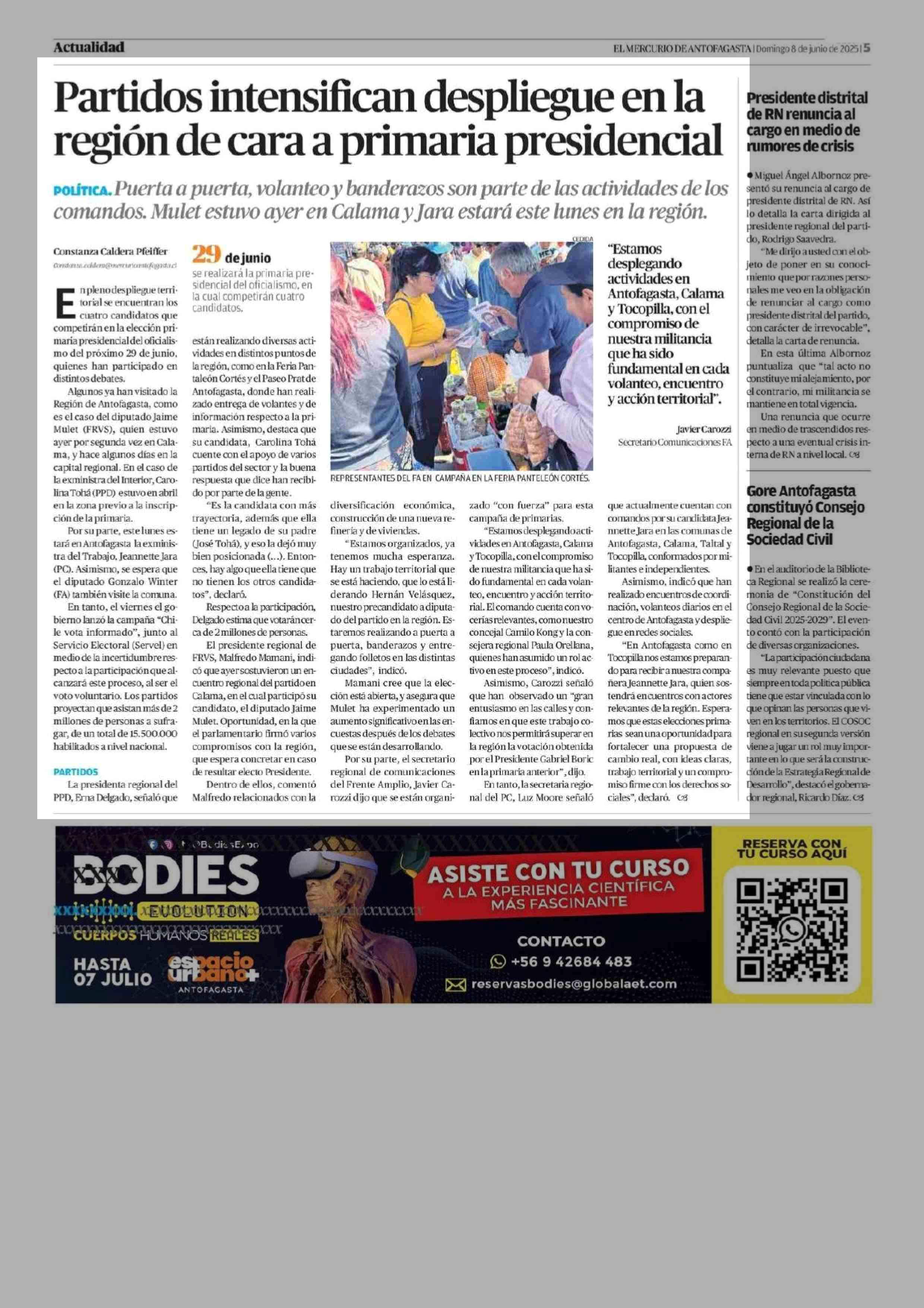 Partidos intensifican despliegue en la región de cara a primaria presidencial 08-06-2025 El Mercurio de Antofagasta |