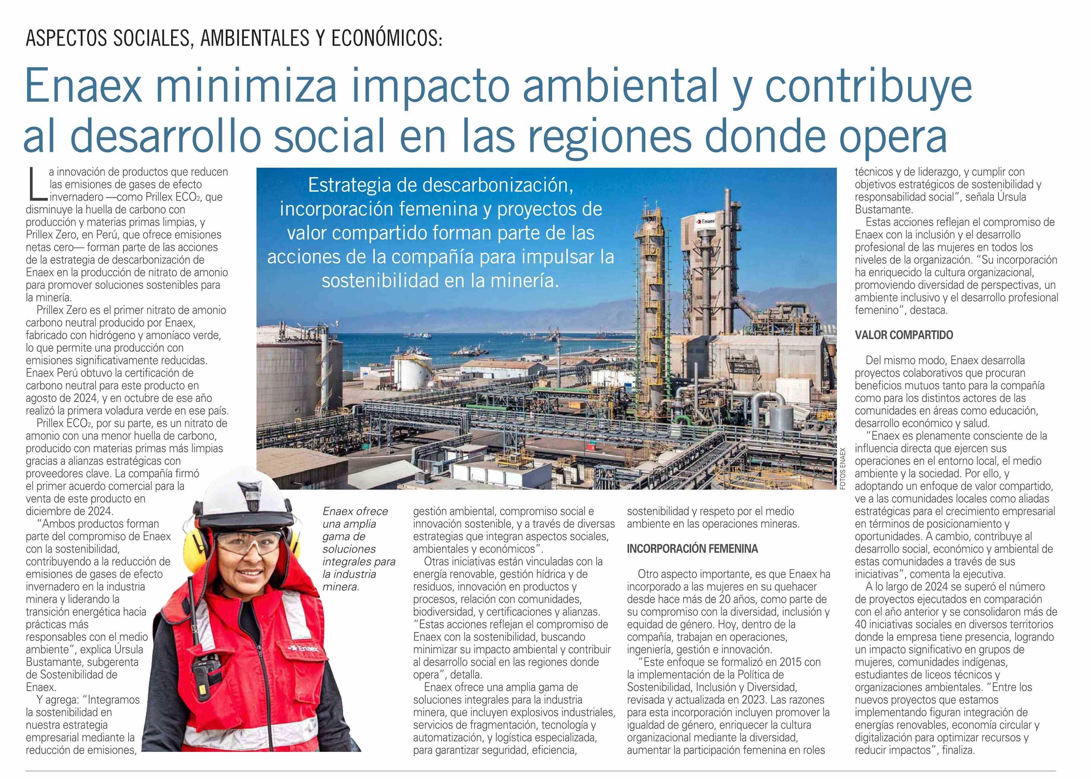 Enaex minimiza impacto ambiental y contribuye al desarrollo social en las regiones donde opera 22-05-2025 El Mercurio |