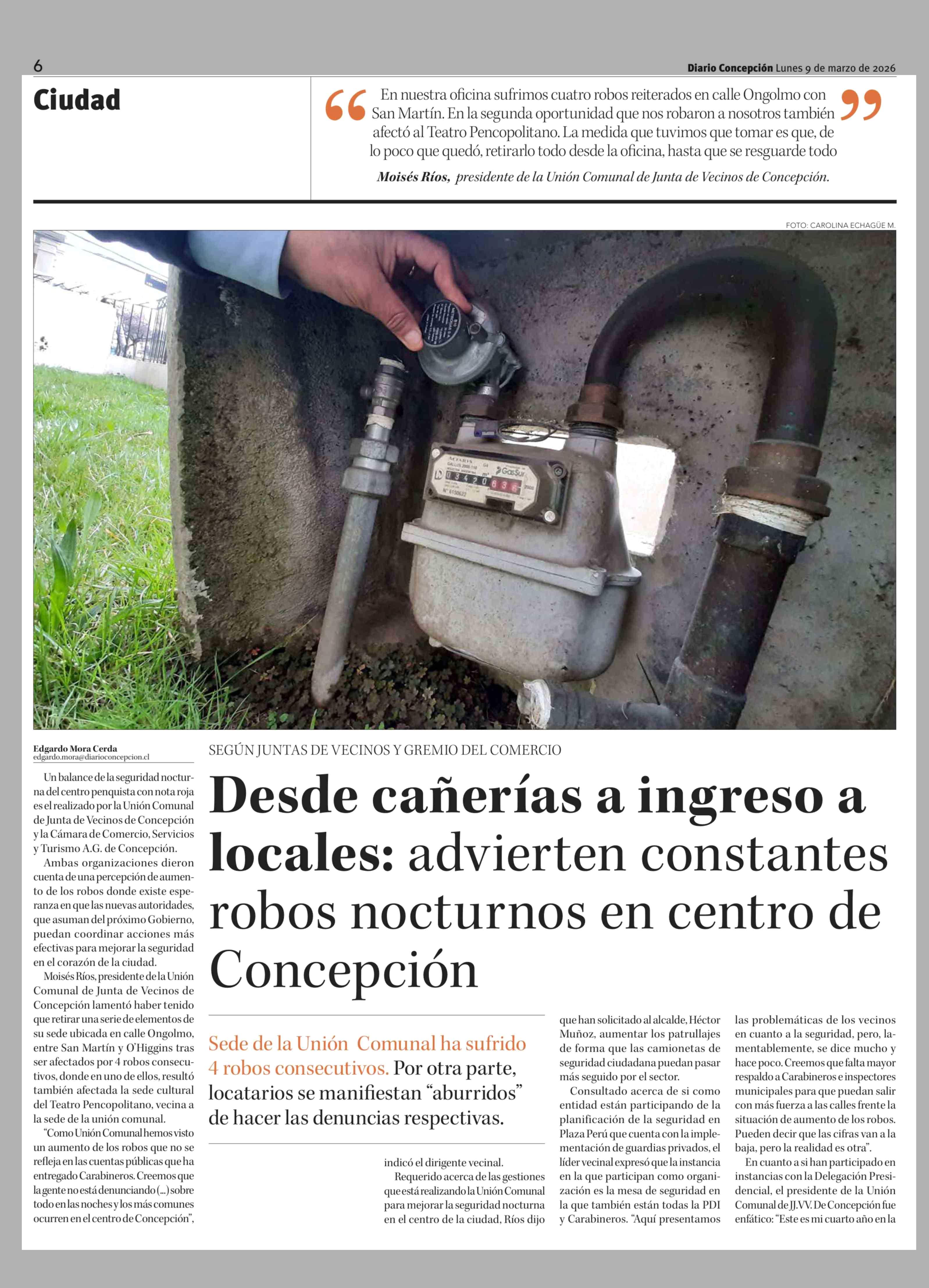 Desde cañerías a ingreso a locales: advierten constantes robos nocturnos en centro de Concepción 09-03-2026 Diario Concepción |