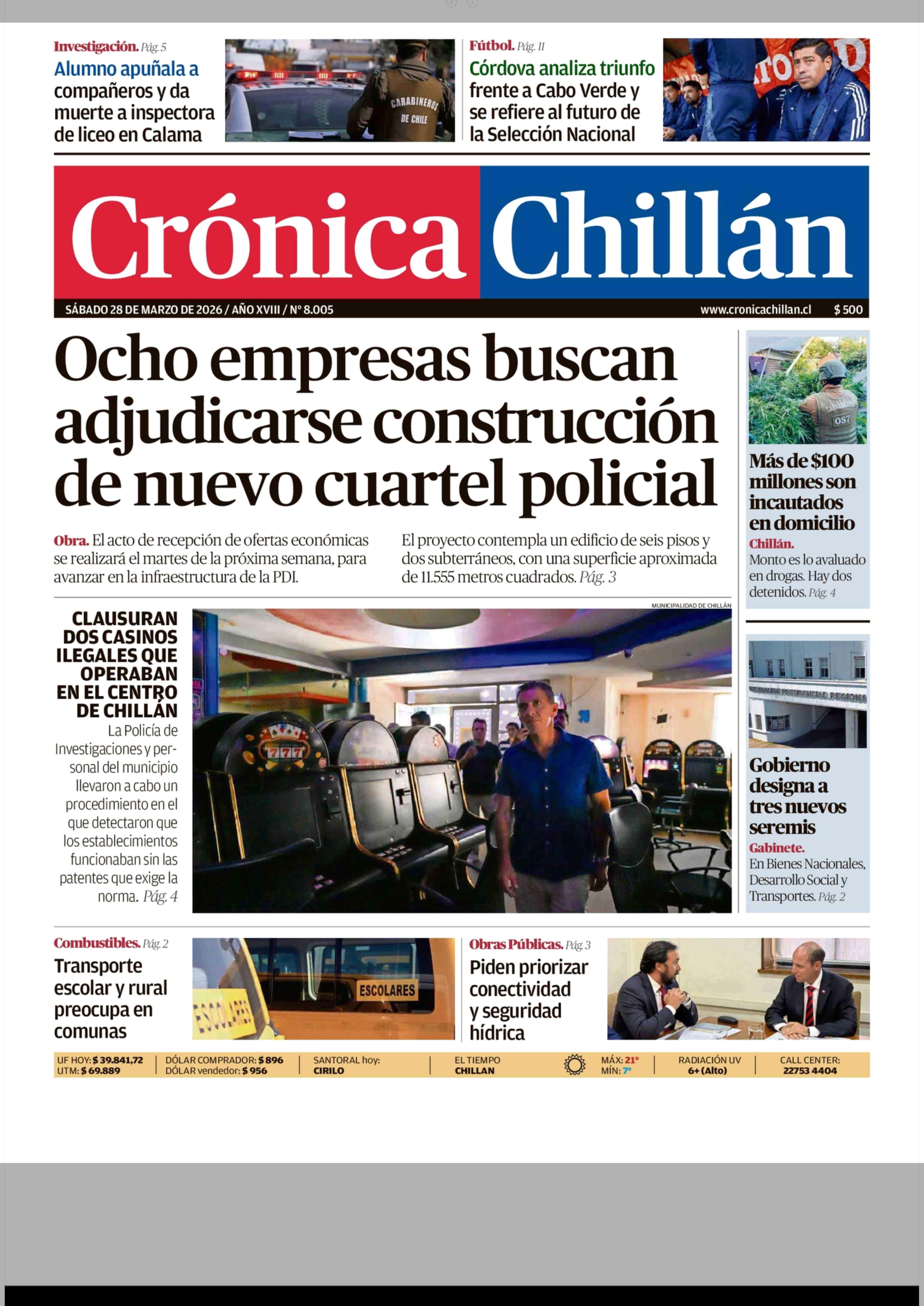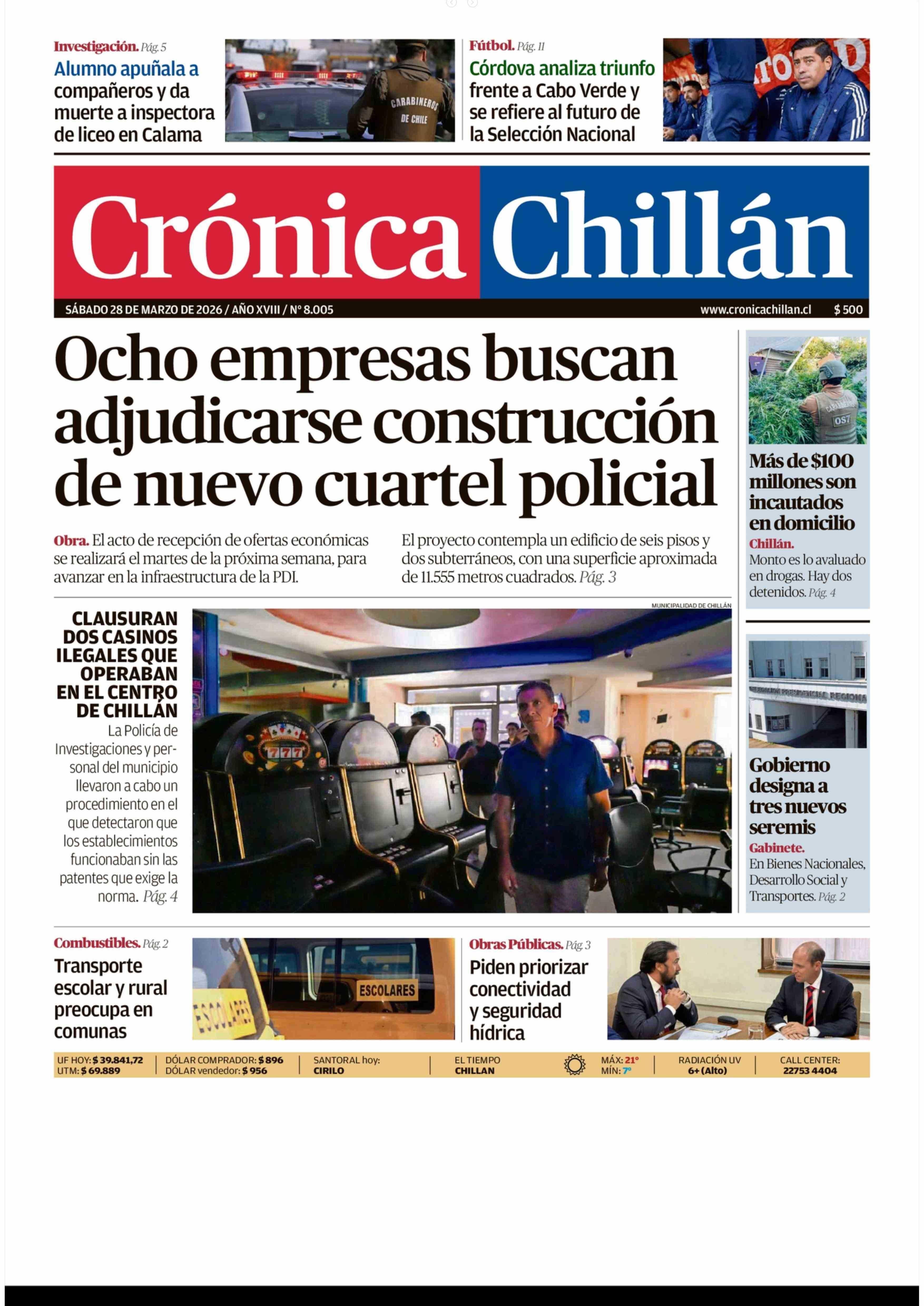 Fecha: 28-03-2026 Sector: Portada Región: Región del Ñuble