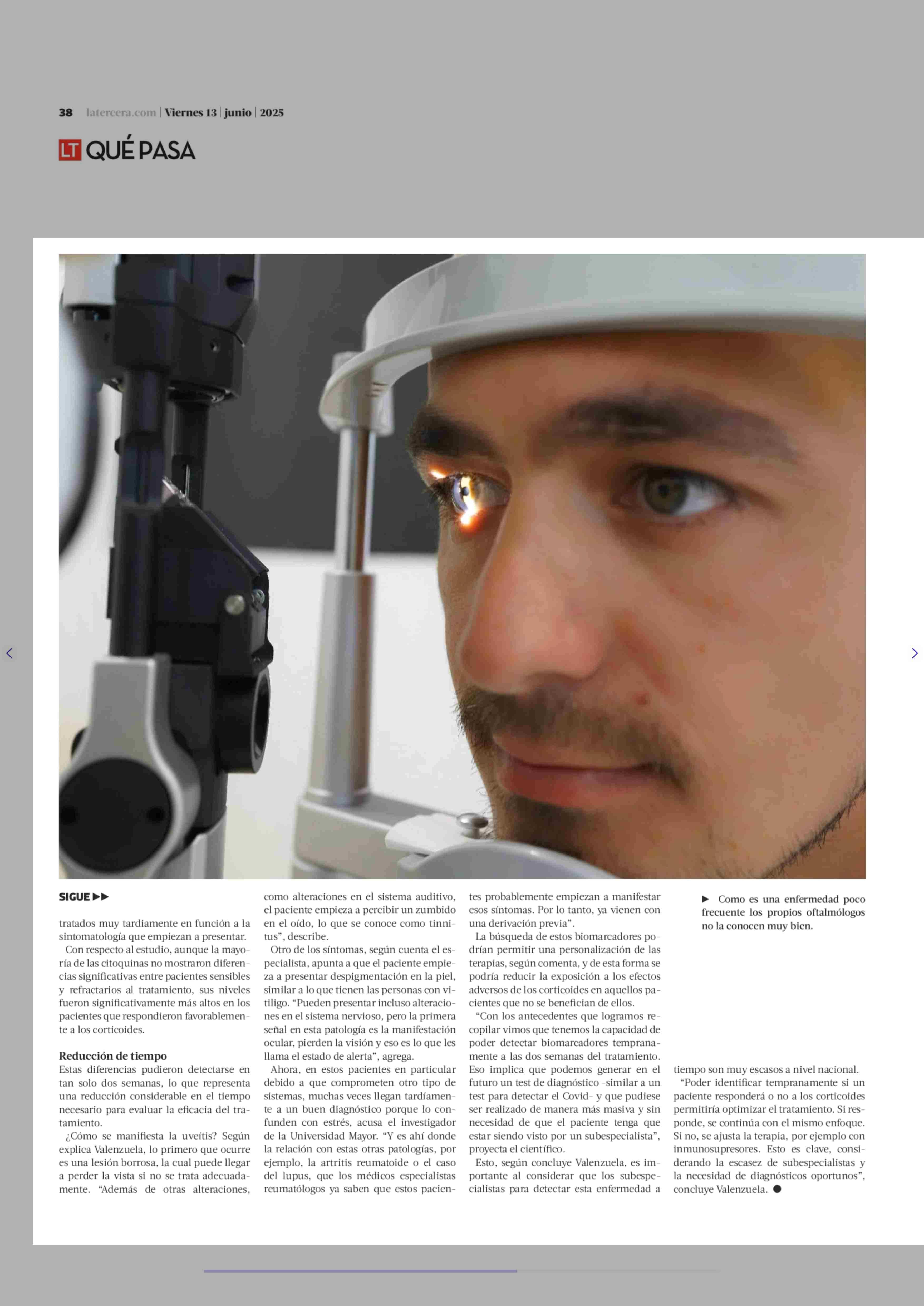 Científicos chilenos realizan crucial hallazgo sobre una de las enfermedades que provocan más ceguera a nivel mundial 13-06-2025 La Tercera |
