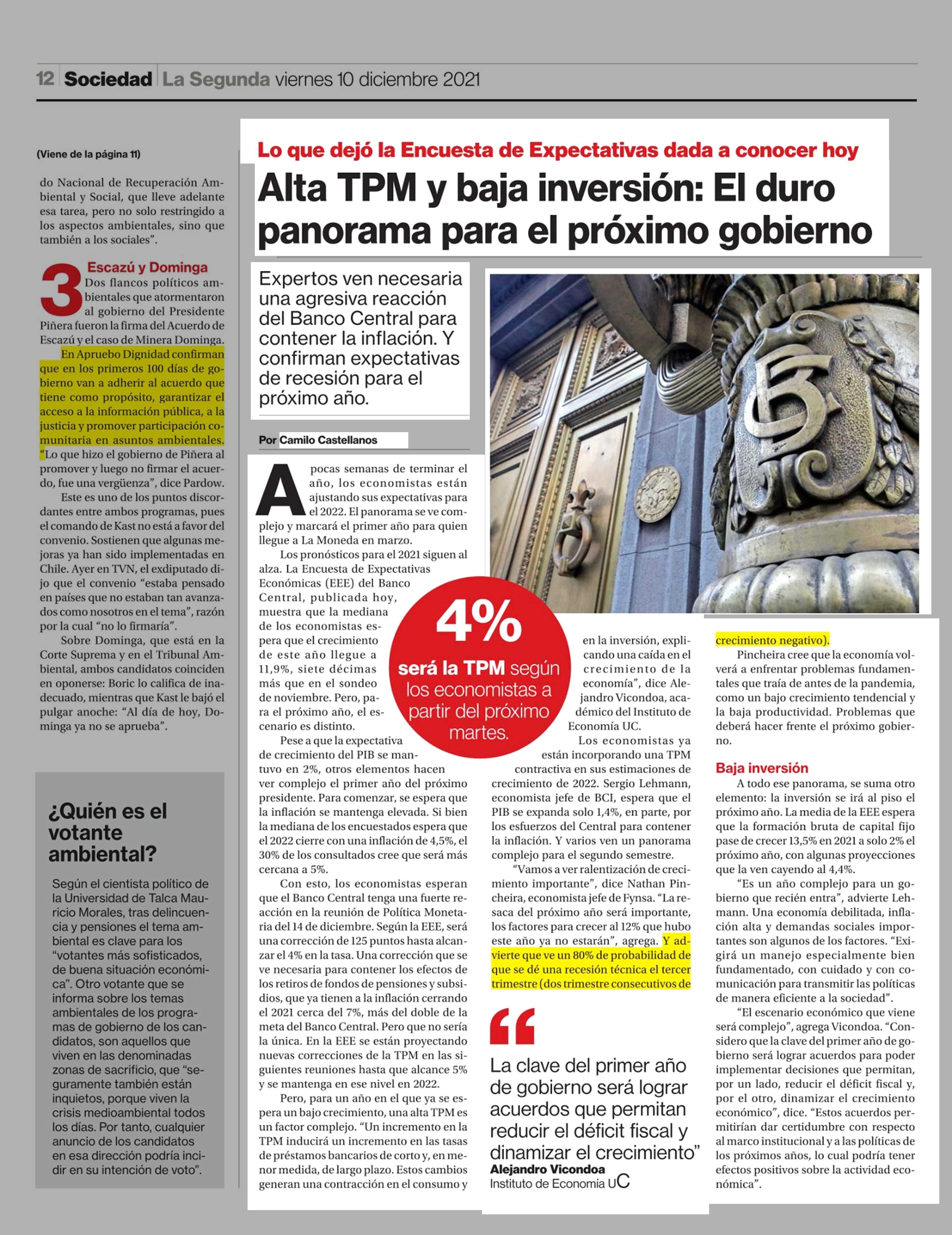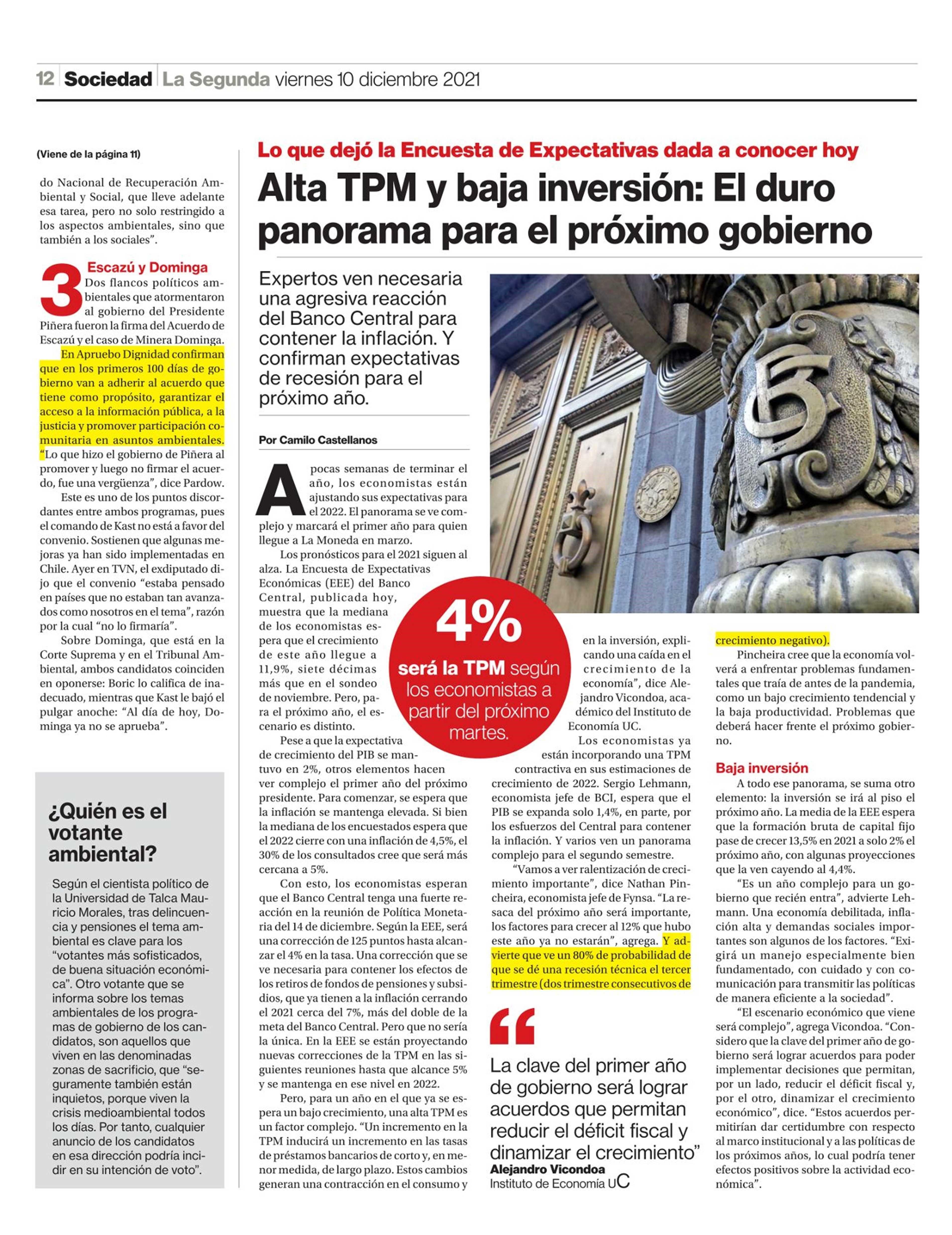 Alta TPM y baja inversión: El duro panorama para el próximo gobierno 10-12-2021 La Segunda |