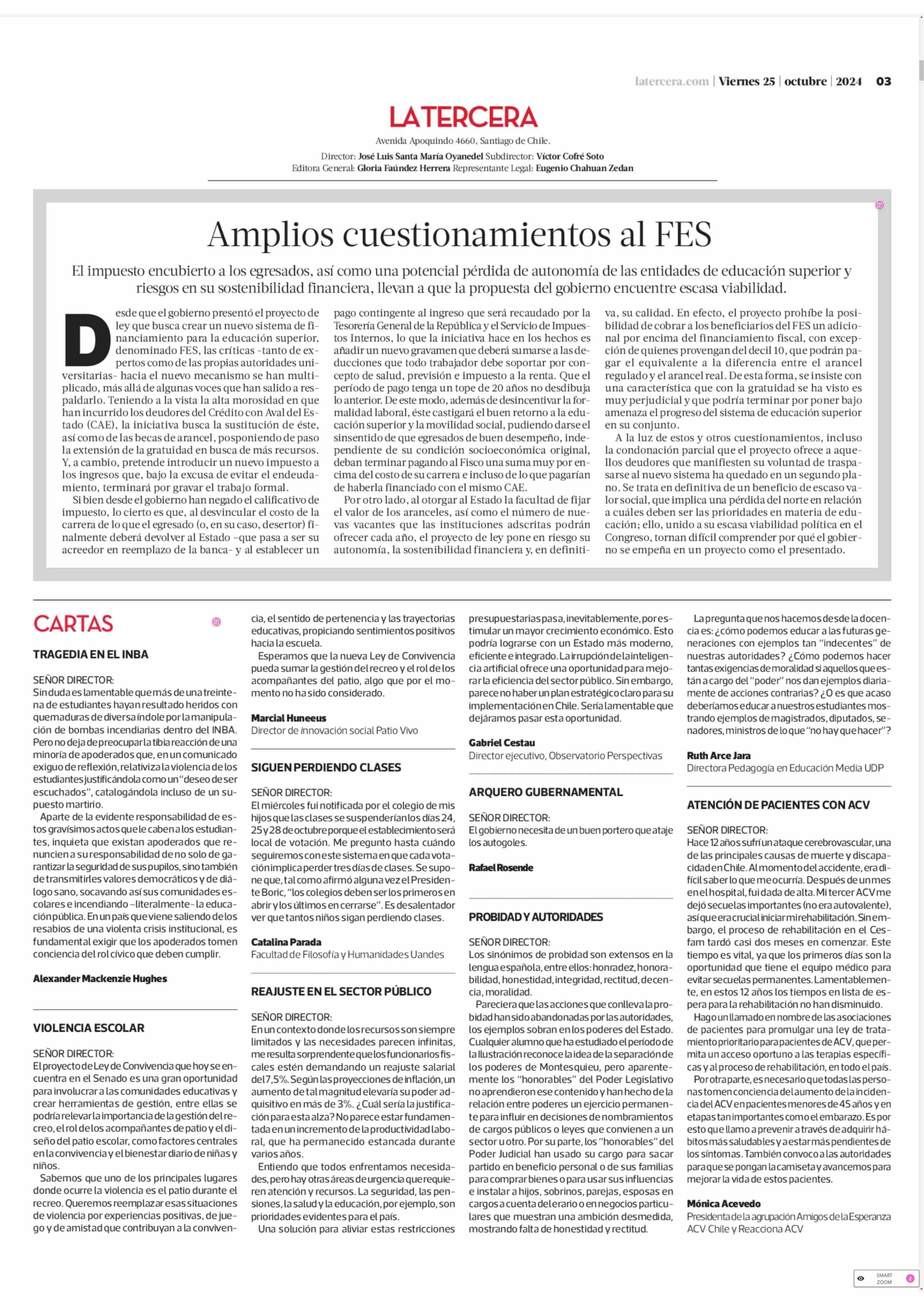 CARTAS: TRAGEDIA EN EL INBA 25-10-2024 La Tercera |