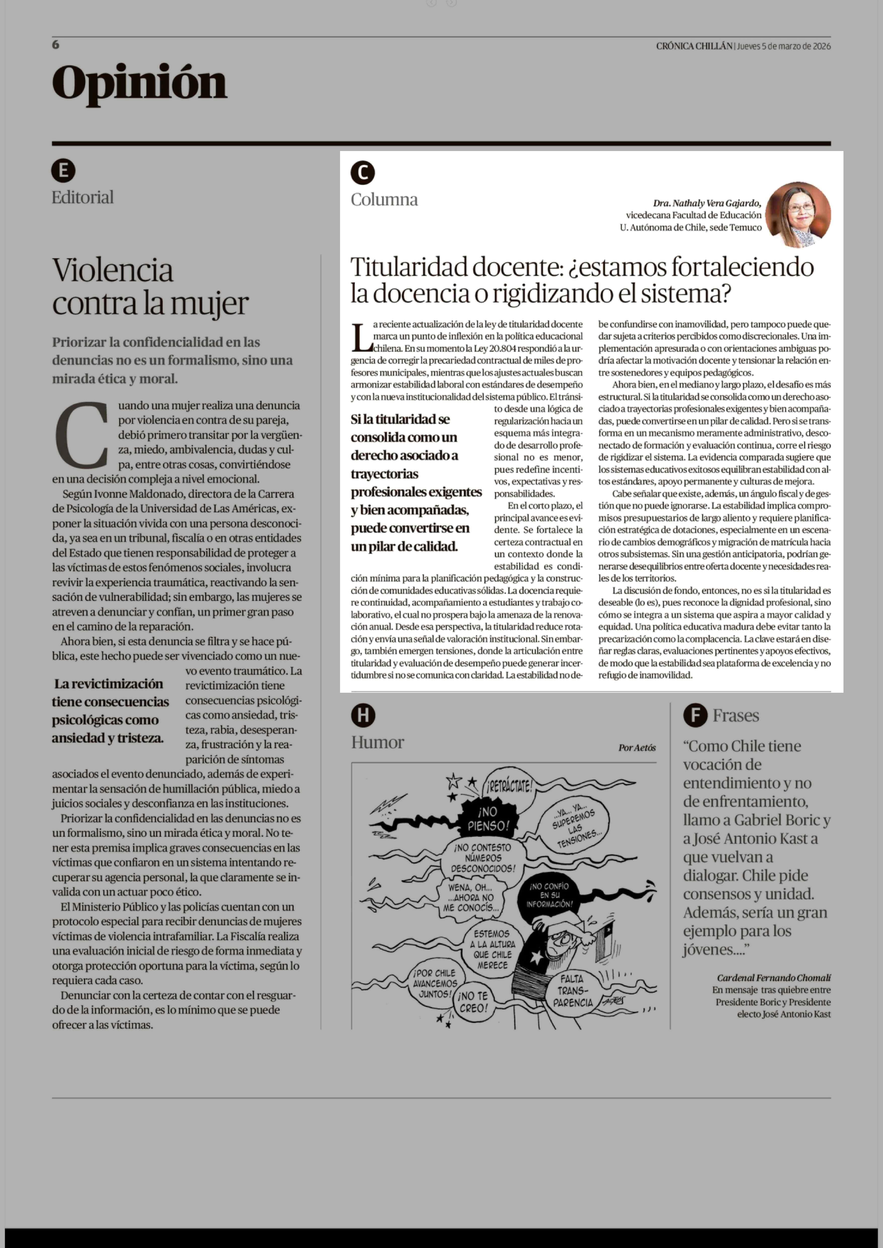 Fecha: 05-03-2026 Sector: Columnas de Opinión Región: Región del Ñuble