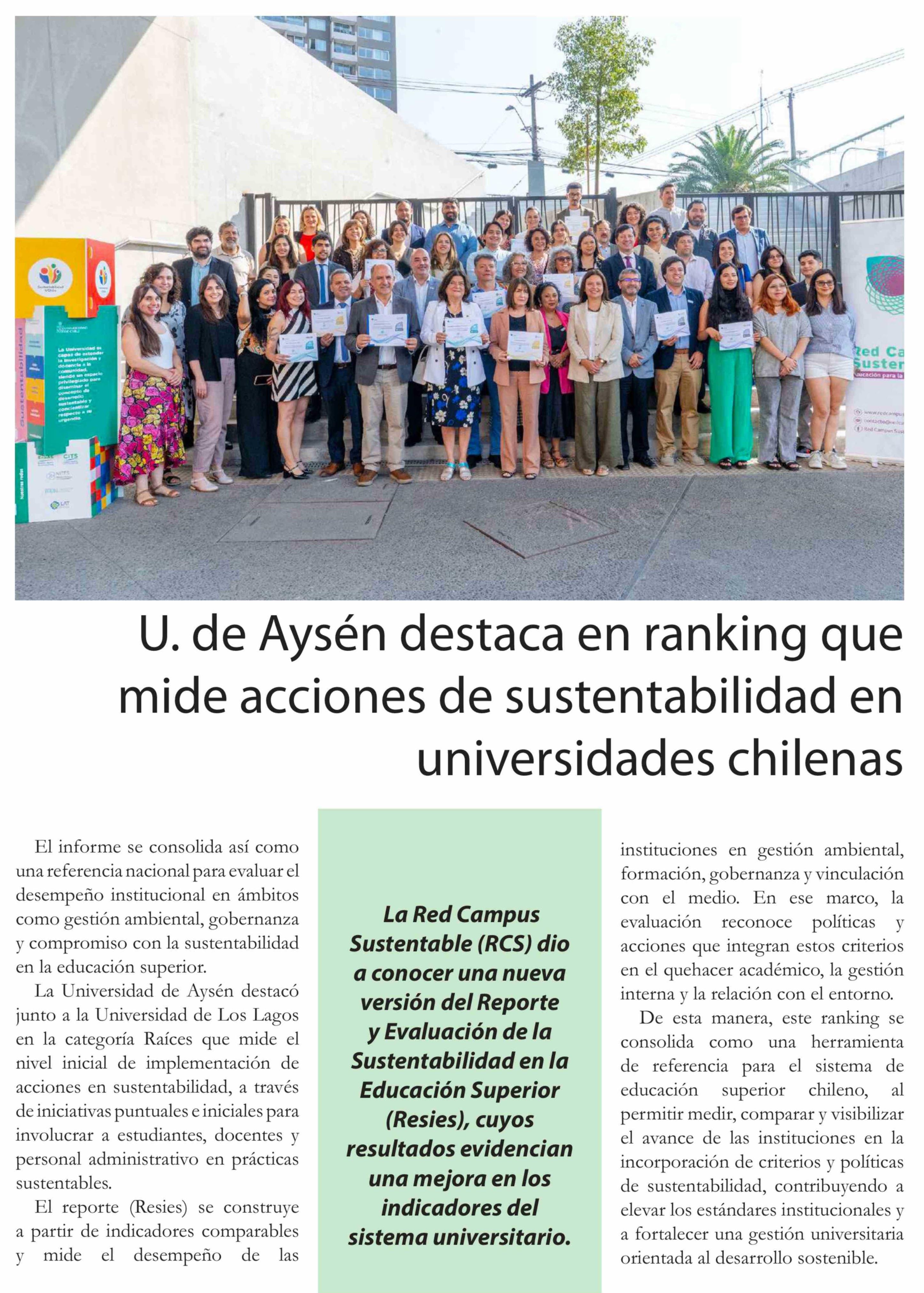 | Título: | U. de Aysén destaca en ranking que mide acciones de sustentabilidad en universidades chilenas |
