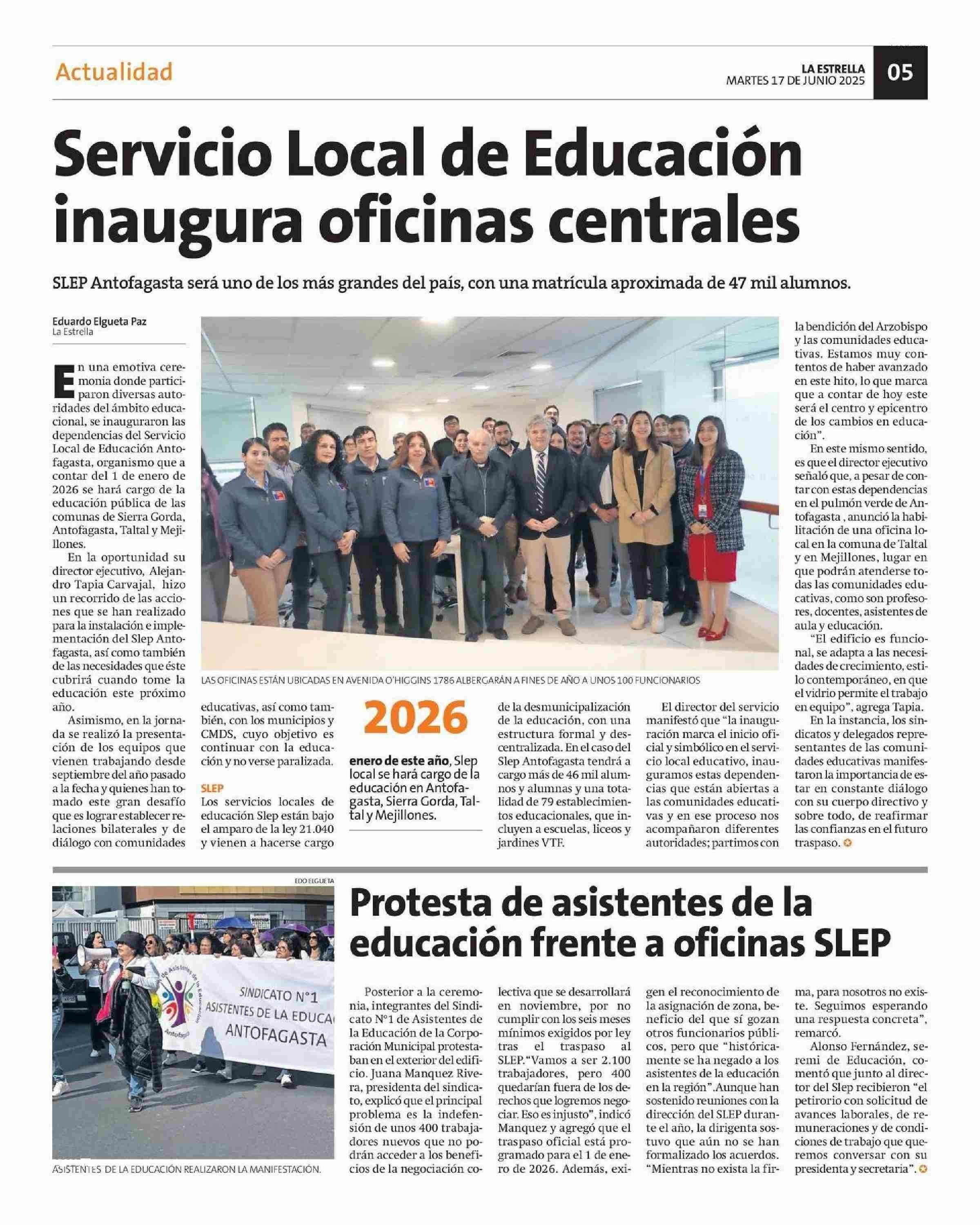 Servicio Local de Educación inaugura oficinas centrales 17-06-2025 La Estrella de Antofagasta |