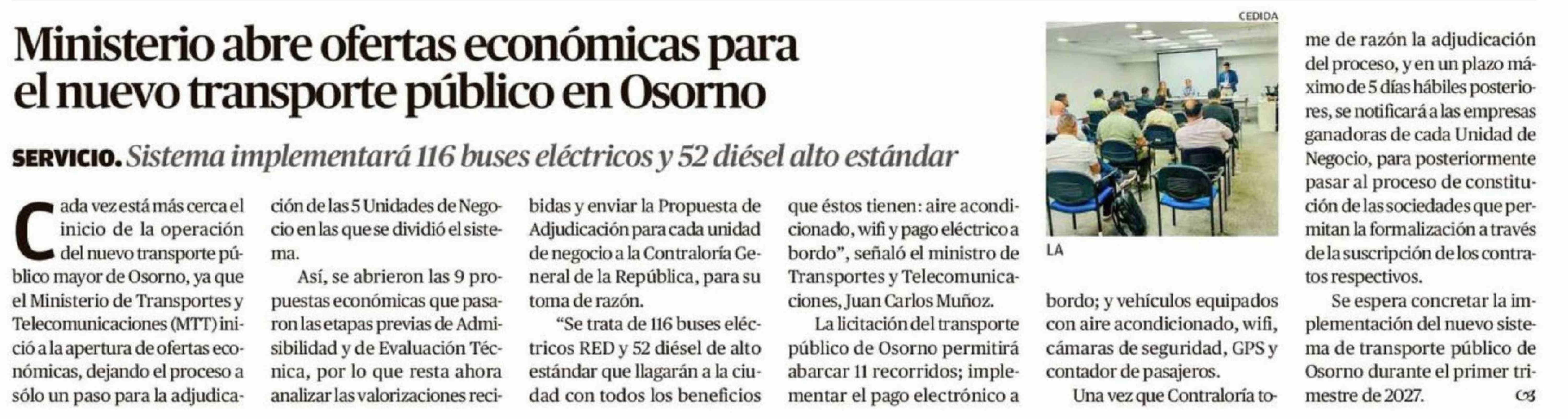 | Título: | Ministerio abre ofertas económicas para el nuevo transporte público en Osorno |