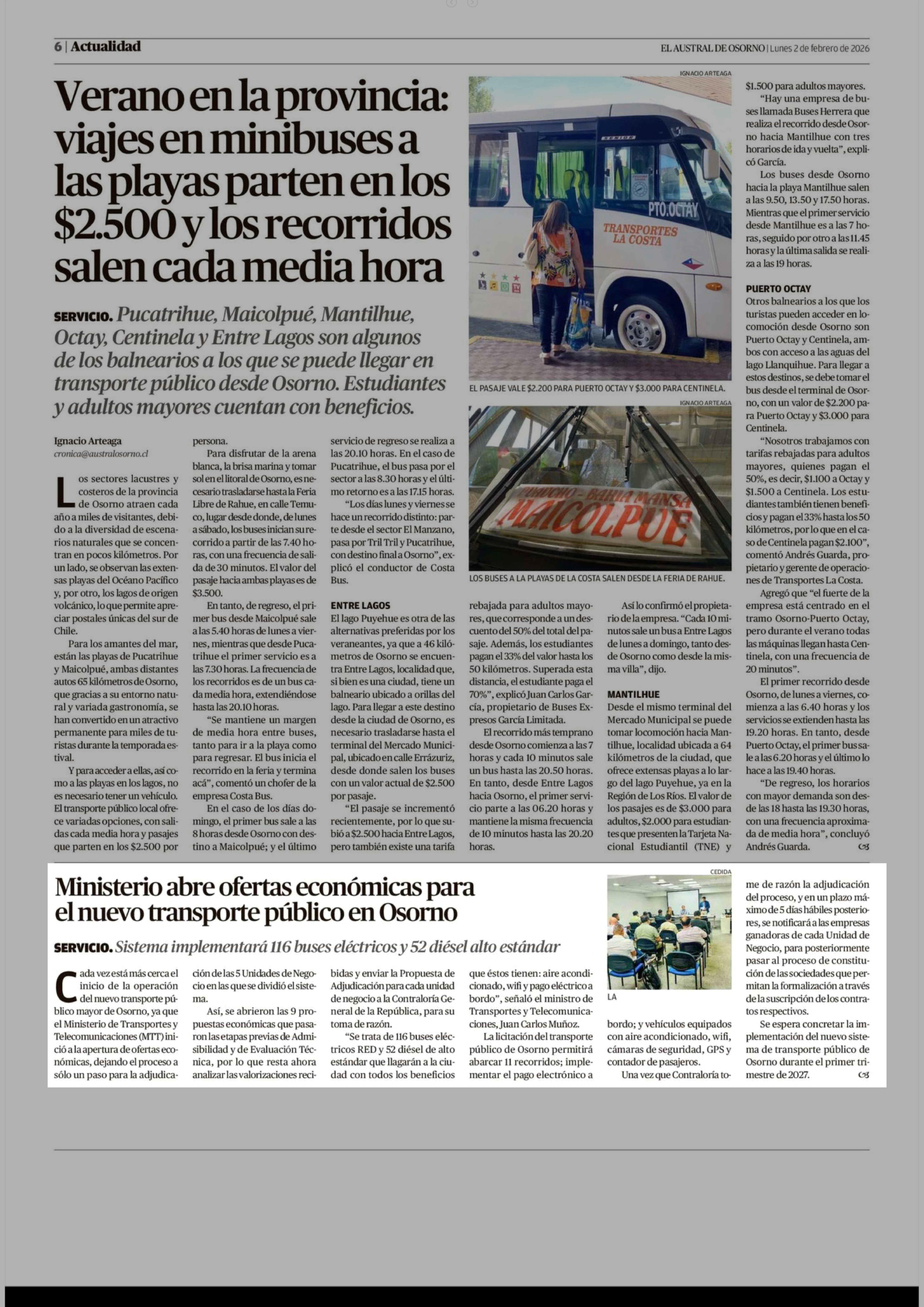 Ministerio abre ofertas económicas para el nuevo transporte público en Osorno 02-02-2026 El Austral de Osorno |