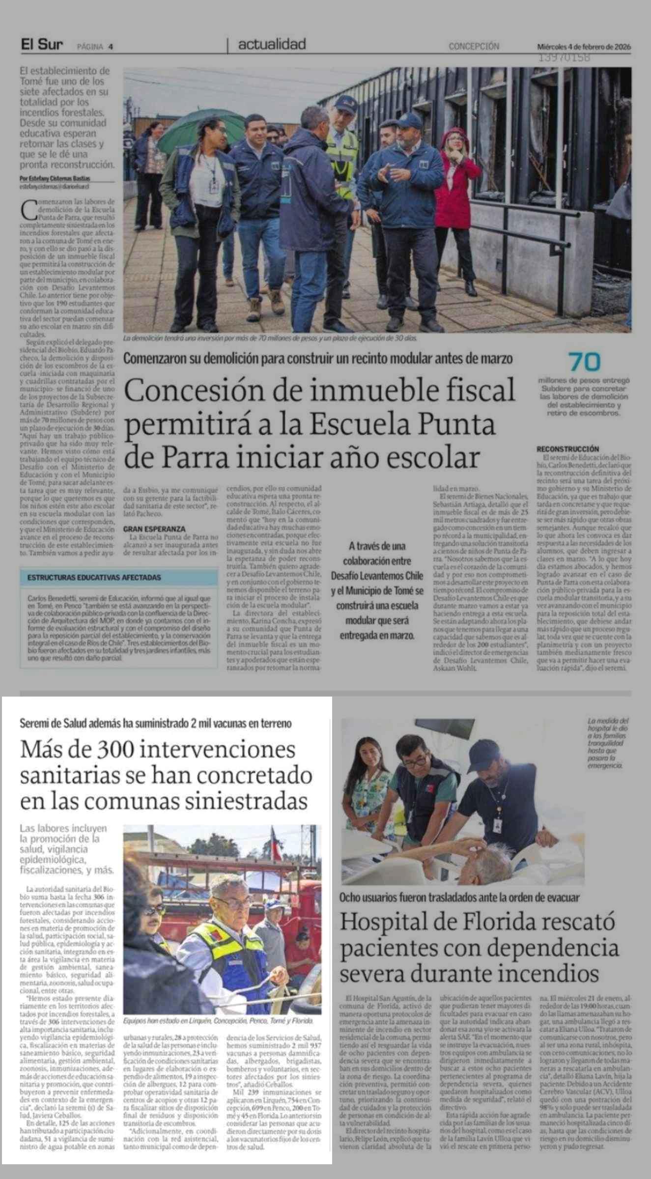 Más de 300 intervenciones sanitarias se han concretado en las comunas siniestradas 04-02-2026 El Sur |