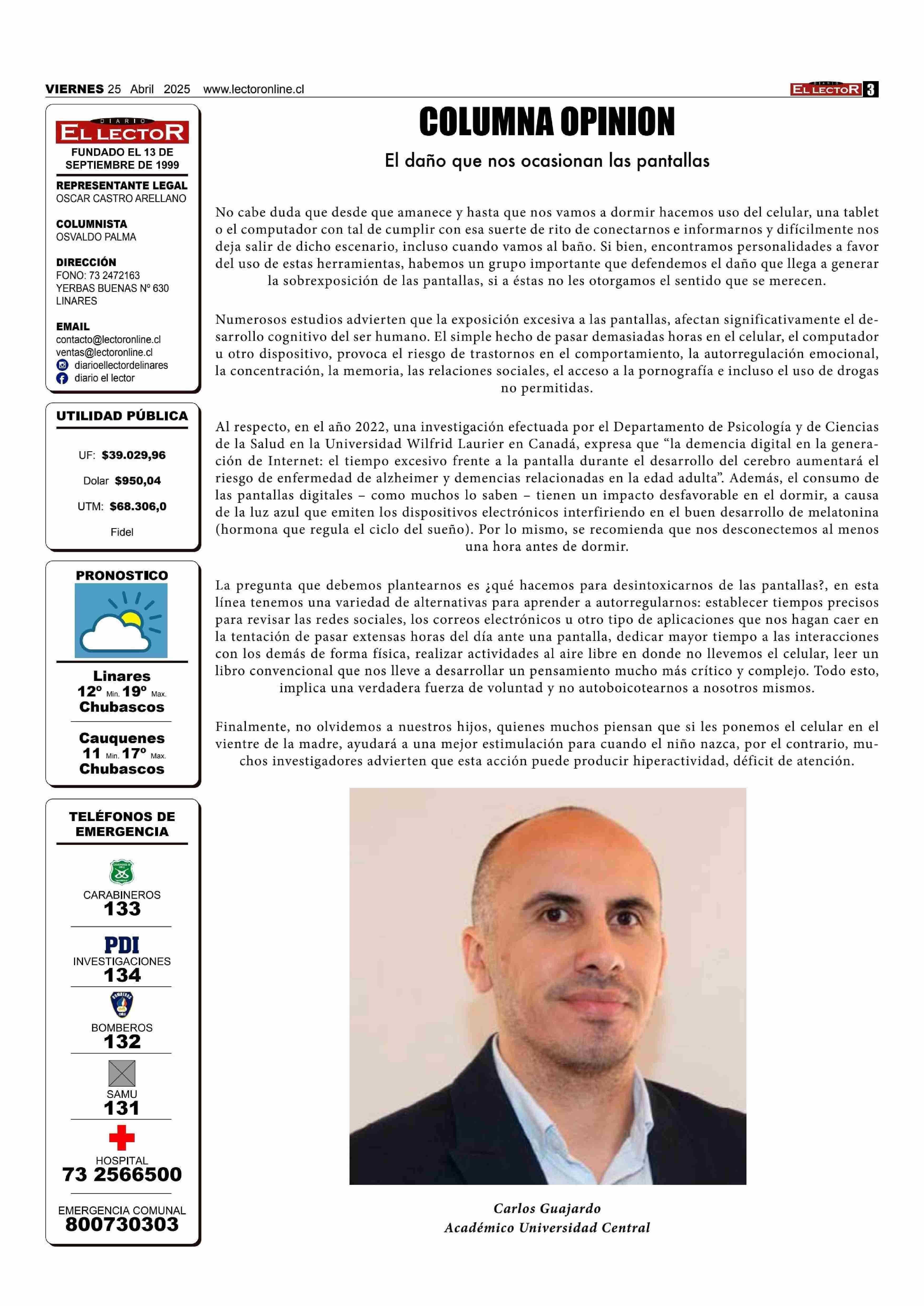 COLUMNAS DE OPINIÓN: El daño que nos ocasionan las pantallas 25-04-2025 El Lector |