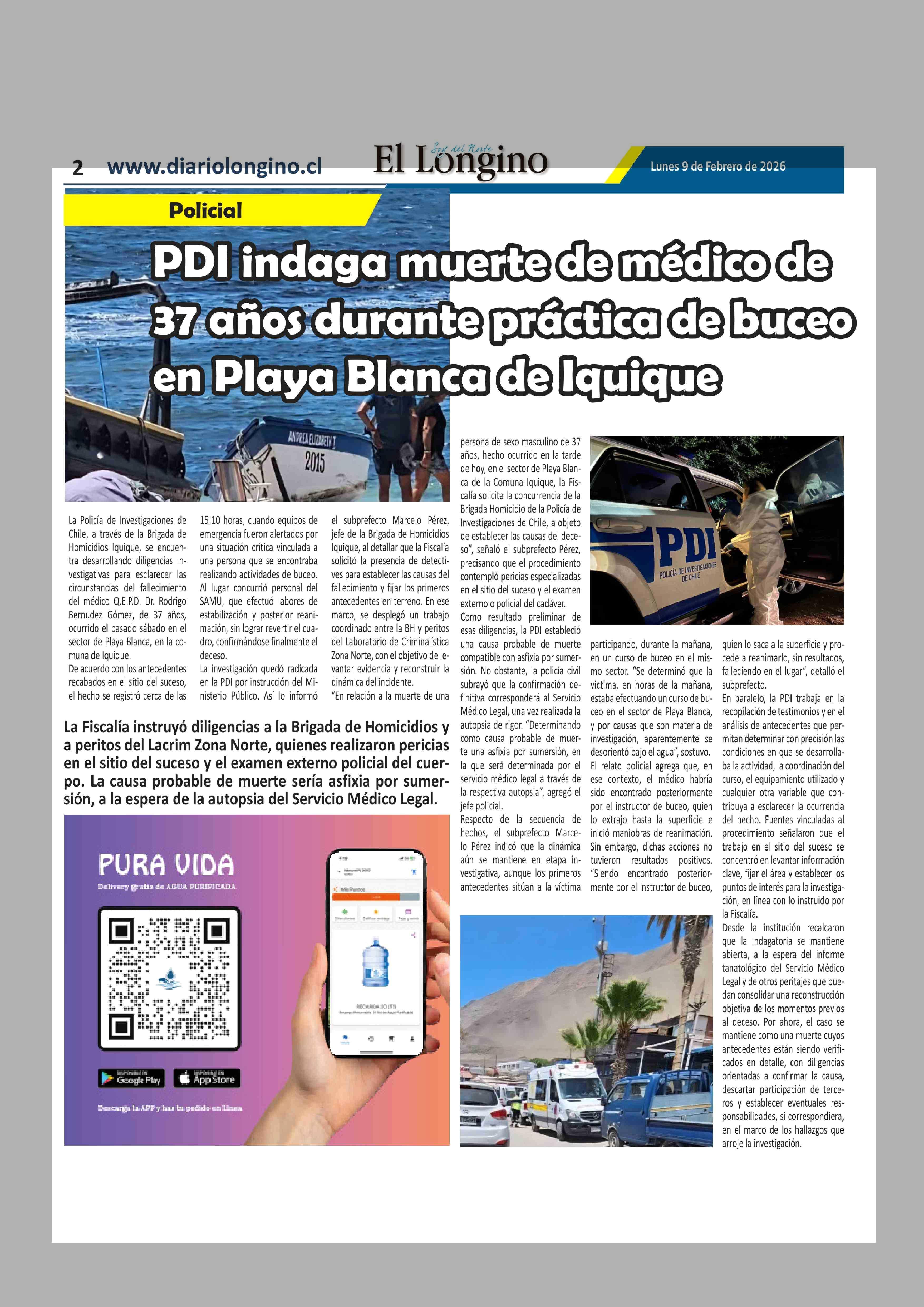 PDI indaga muerte de médico de 37 Años durante práctica de buceo en Playa Blanca de Iquique 09-02-2026 El Longino |