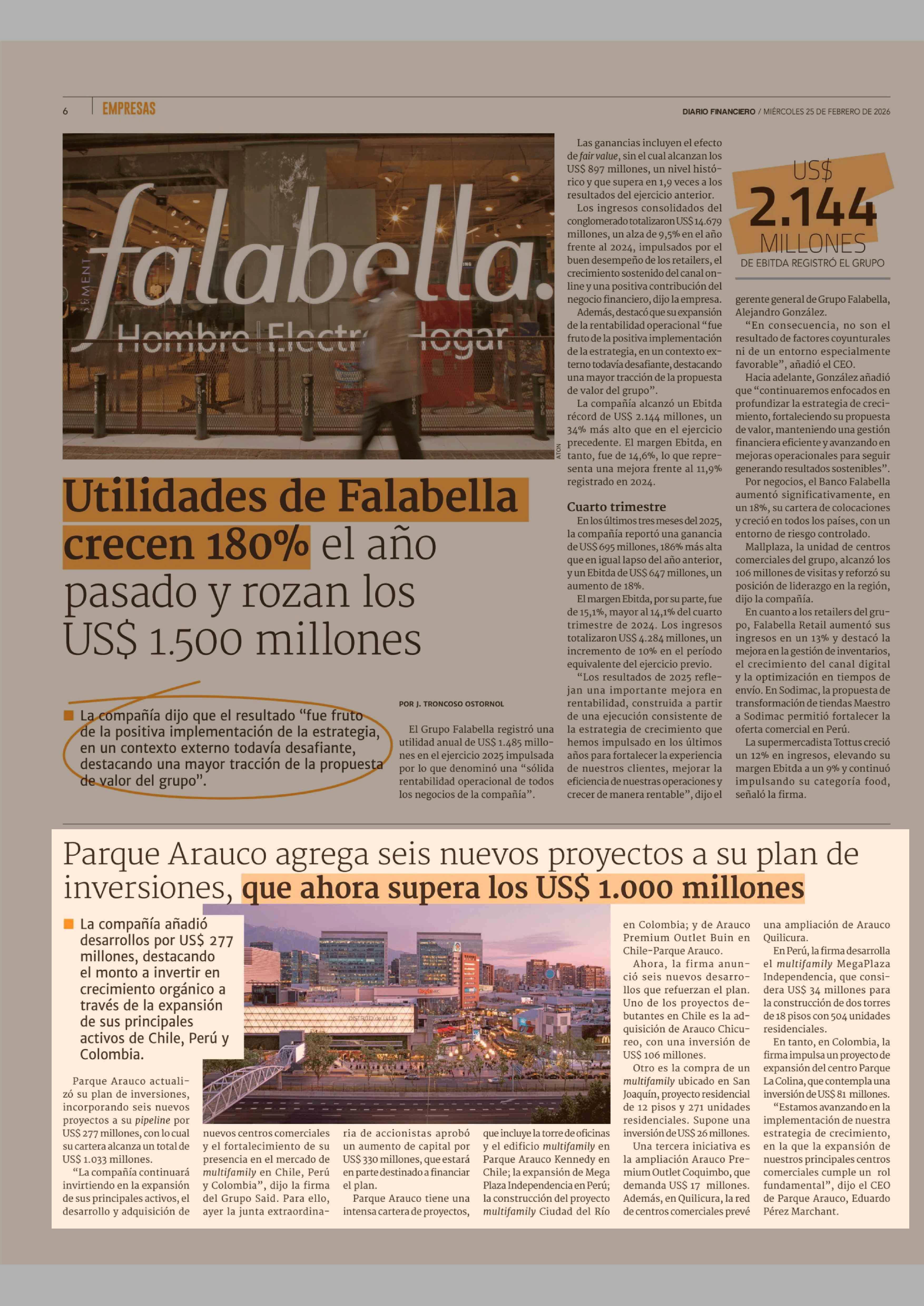 Fuente: Diario Financiero (Diario Financiero) Página(s): 6
