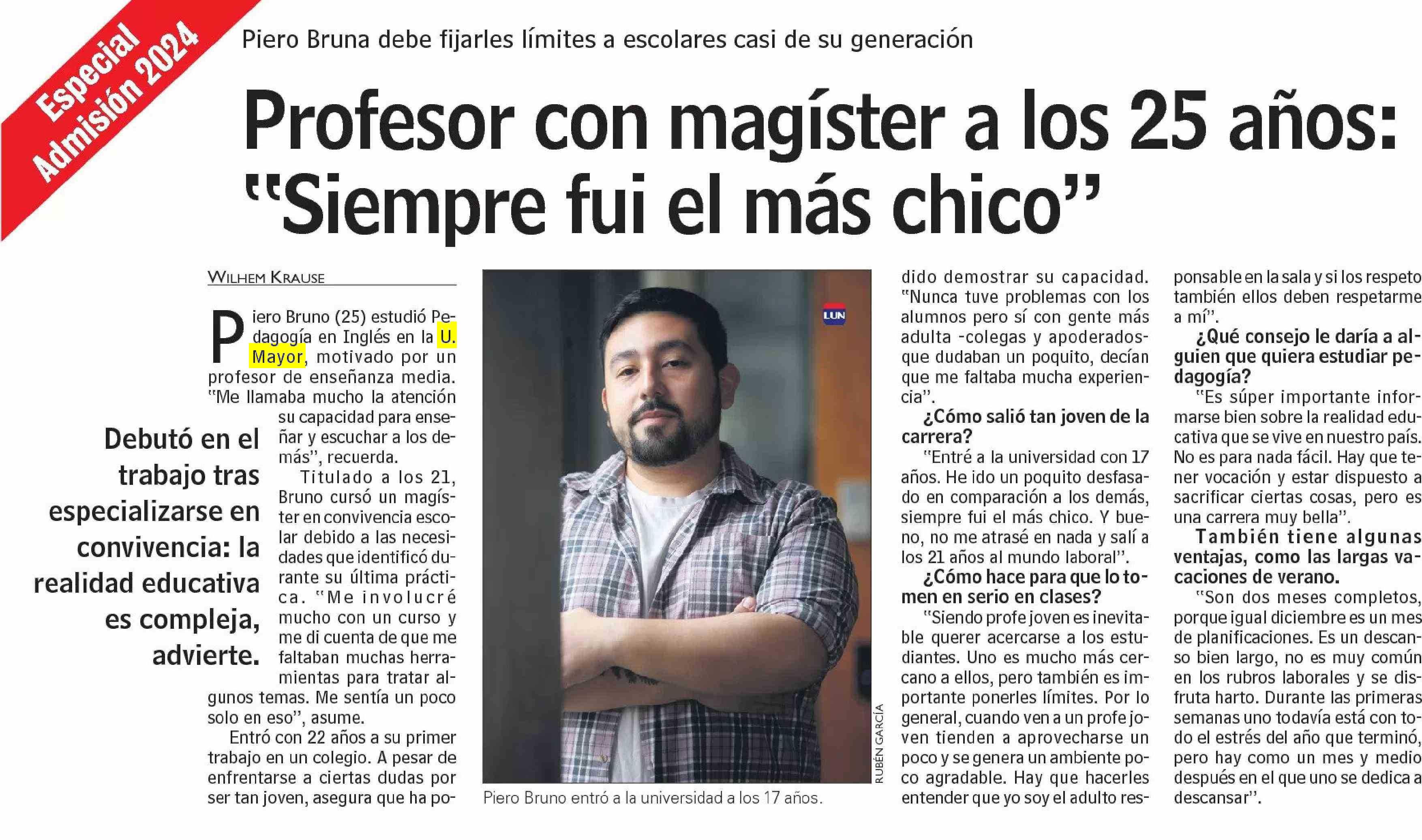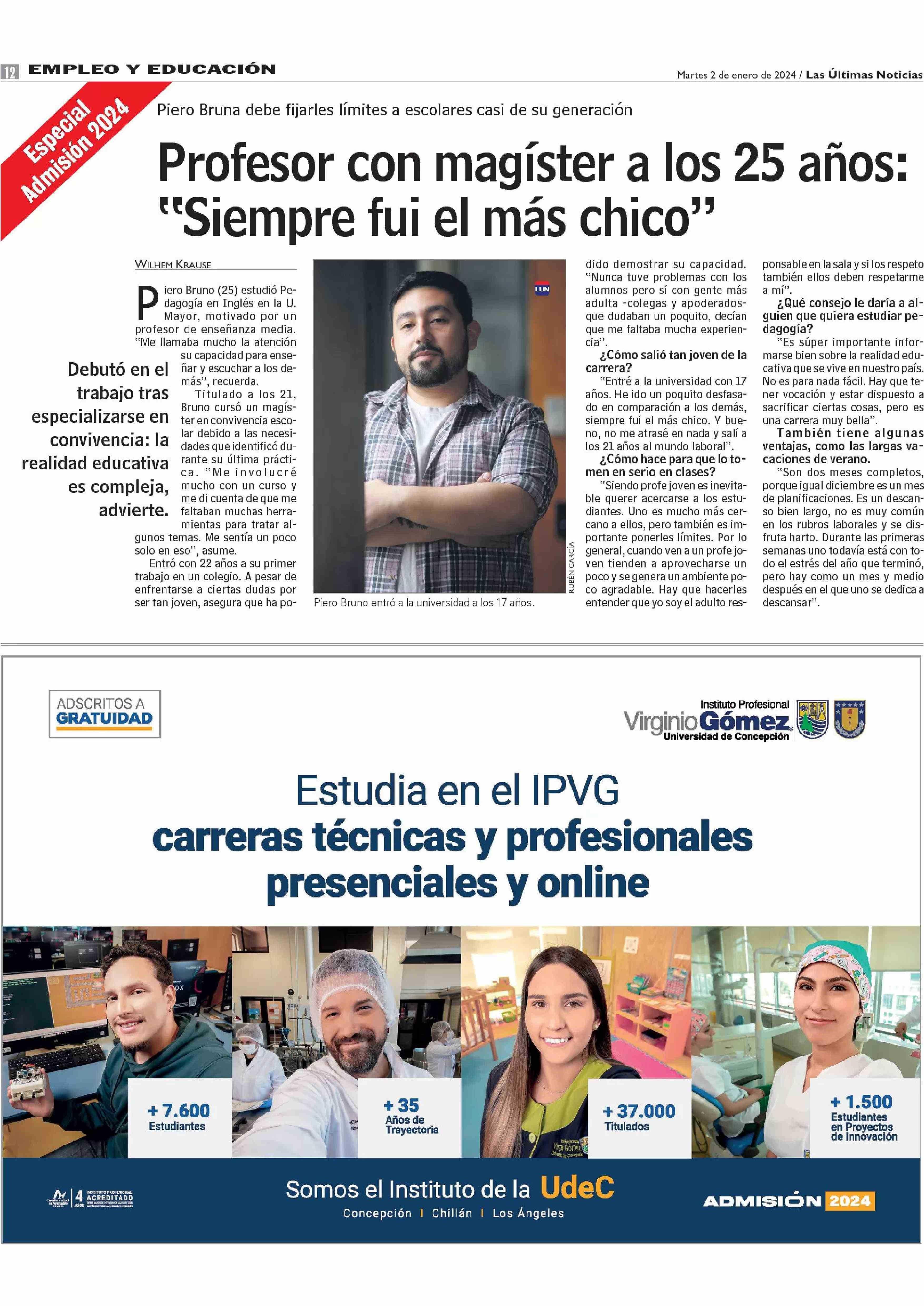 Profesor con magíster a los 25 años: "Siempre fui el más chico" 02-01-2024 Las Últimas Noticias |