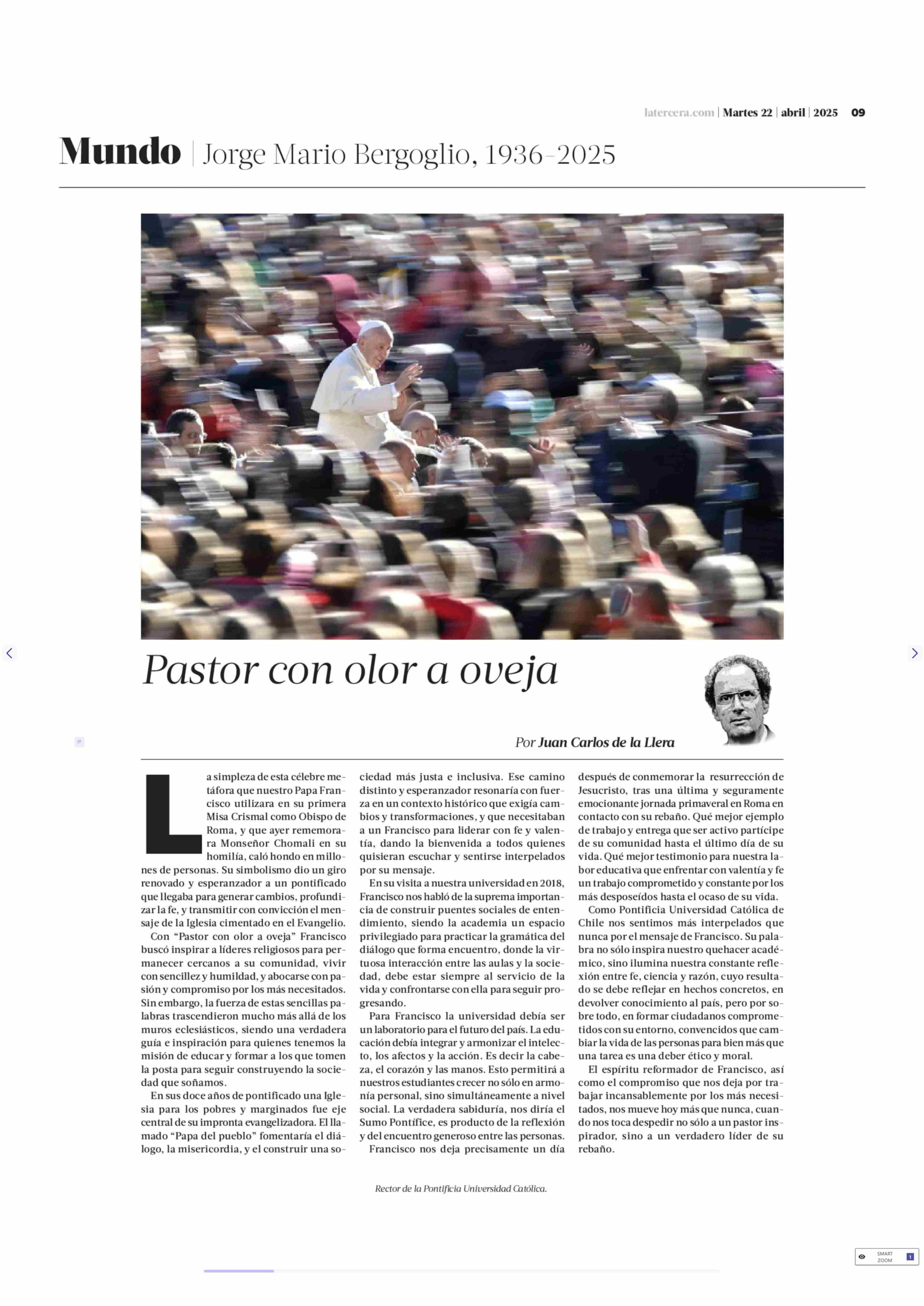 Columnas de Opinión: Pastor con olor a oveja 22-04-2025 La Tercera |