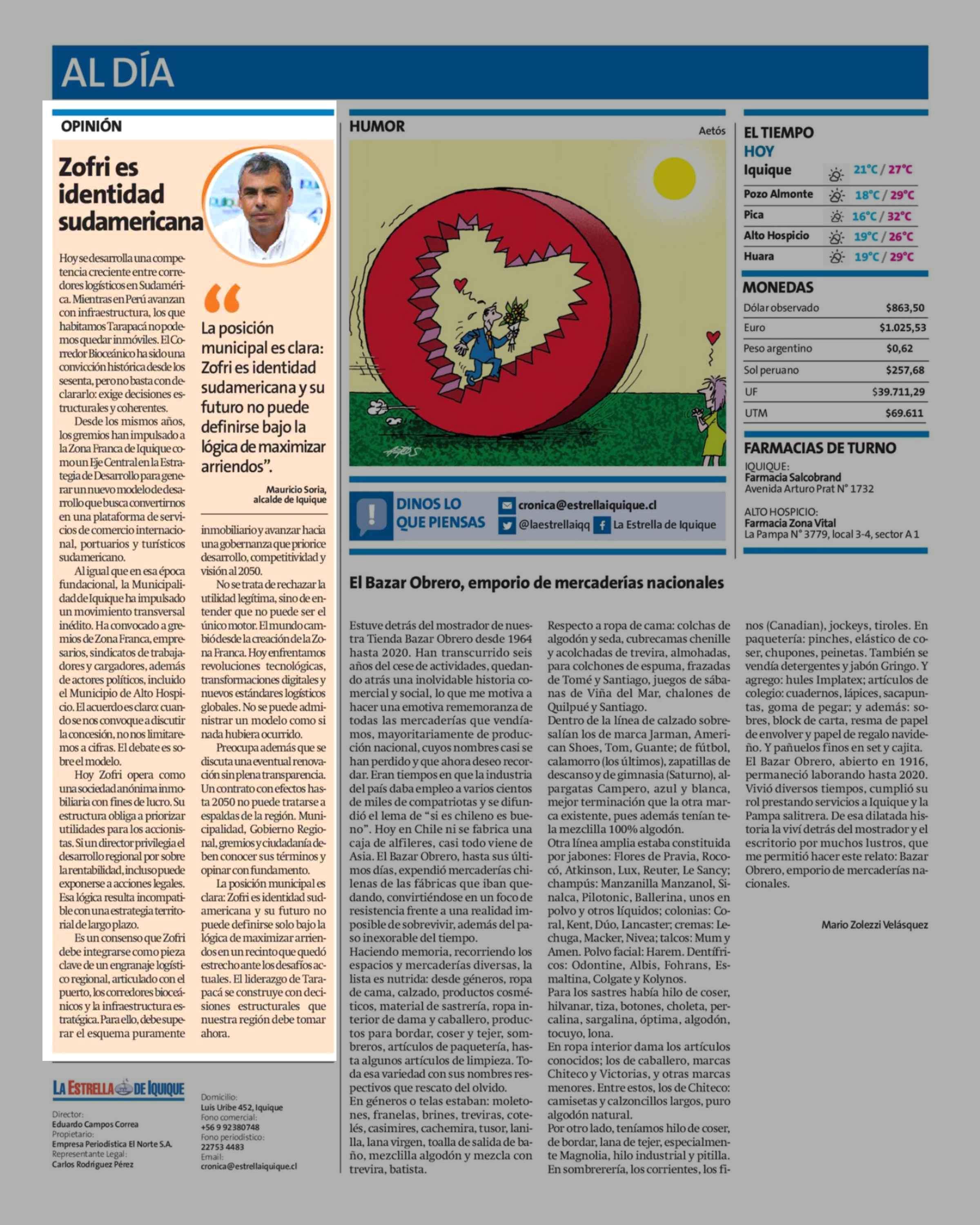 Columnas de Opinión: Zofri es identidad sudamericana 14-02-2026 La Estrella de Iquique |