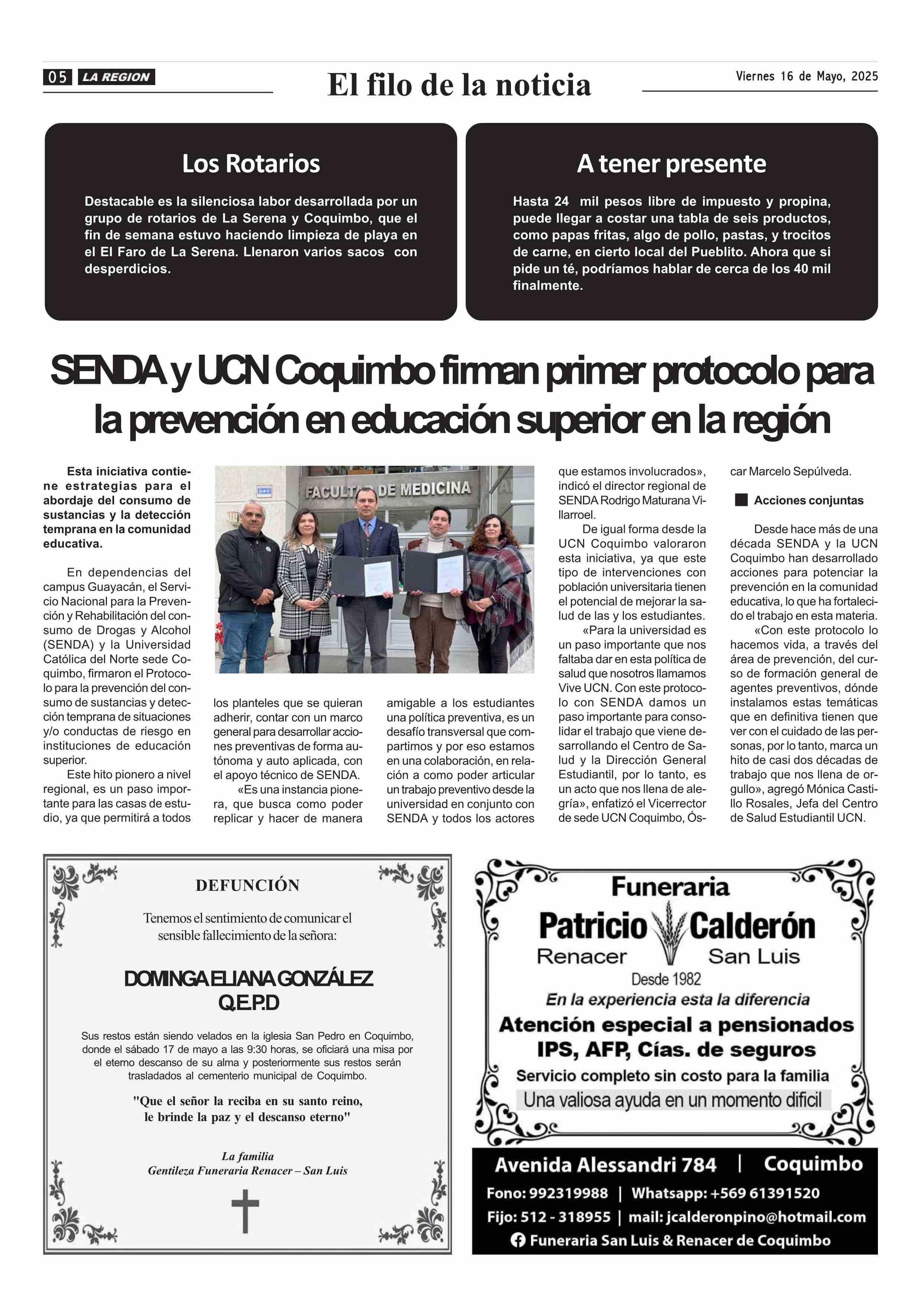| Fecha: | 16-05-2025 | Sector: | Noticia general | Región: | Región de Coquimbo |