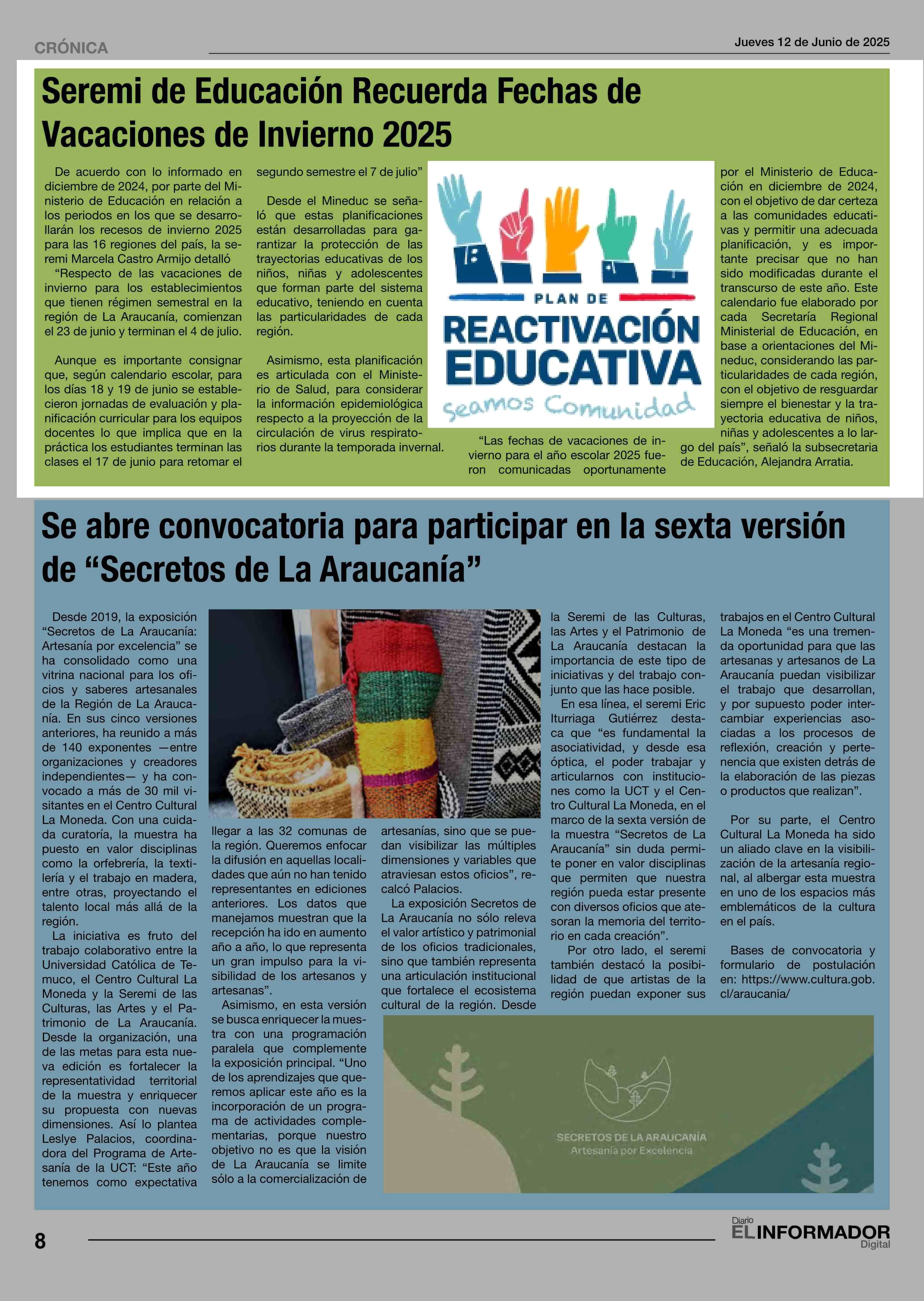 | Fecha: | 12-06-2025 | Sector: | Noticia general | Región: | Región de la Araucanía |