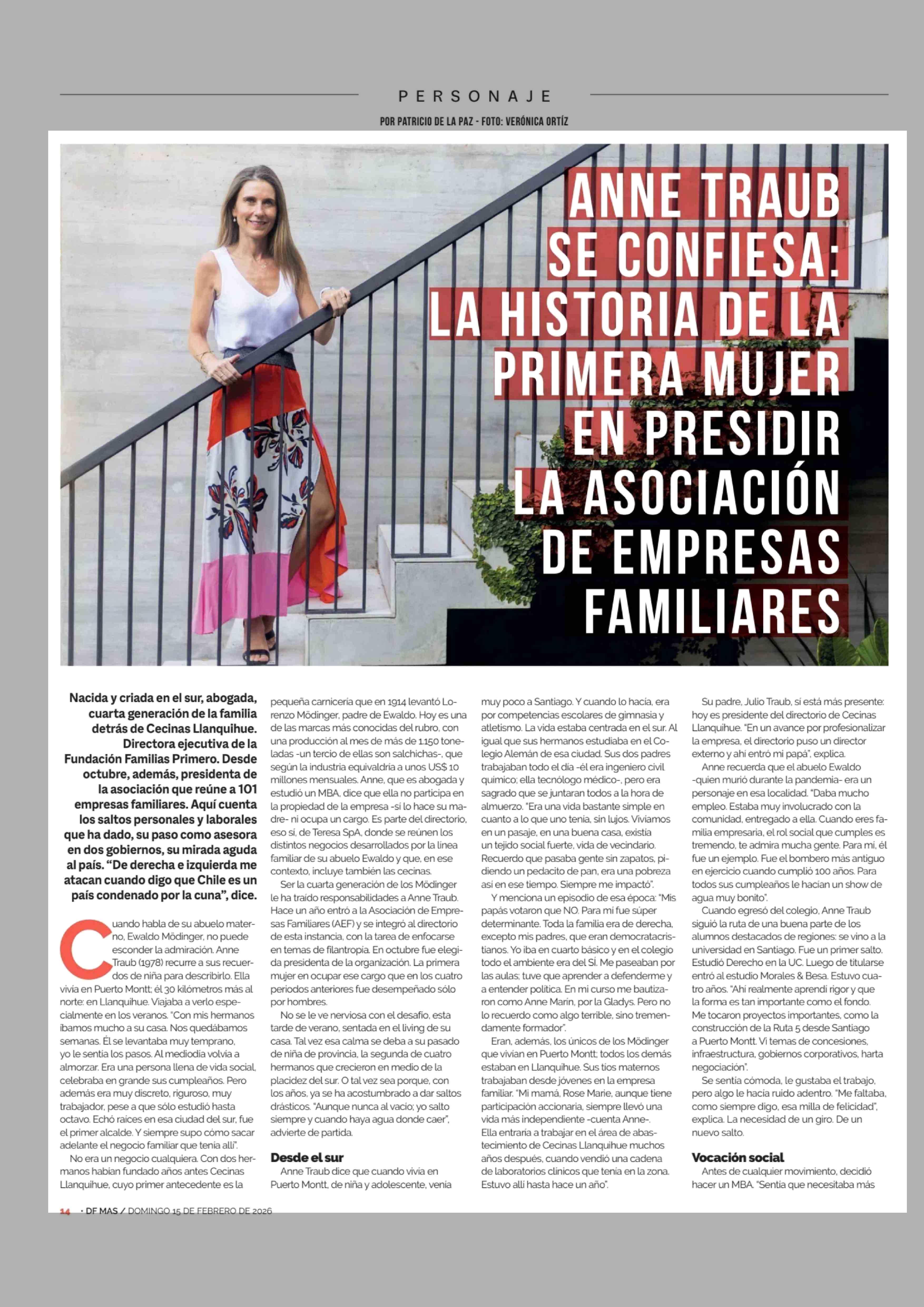 ANNE TRAUB SE CONFIESA: LA HISTORIA DE LA PRIMERA MUJER EN PRESIDIR LA ASOCIACIÓN DE EMPRESAS FAMILIARES
