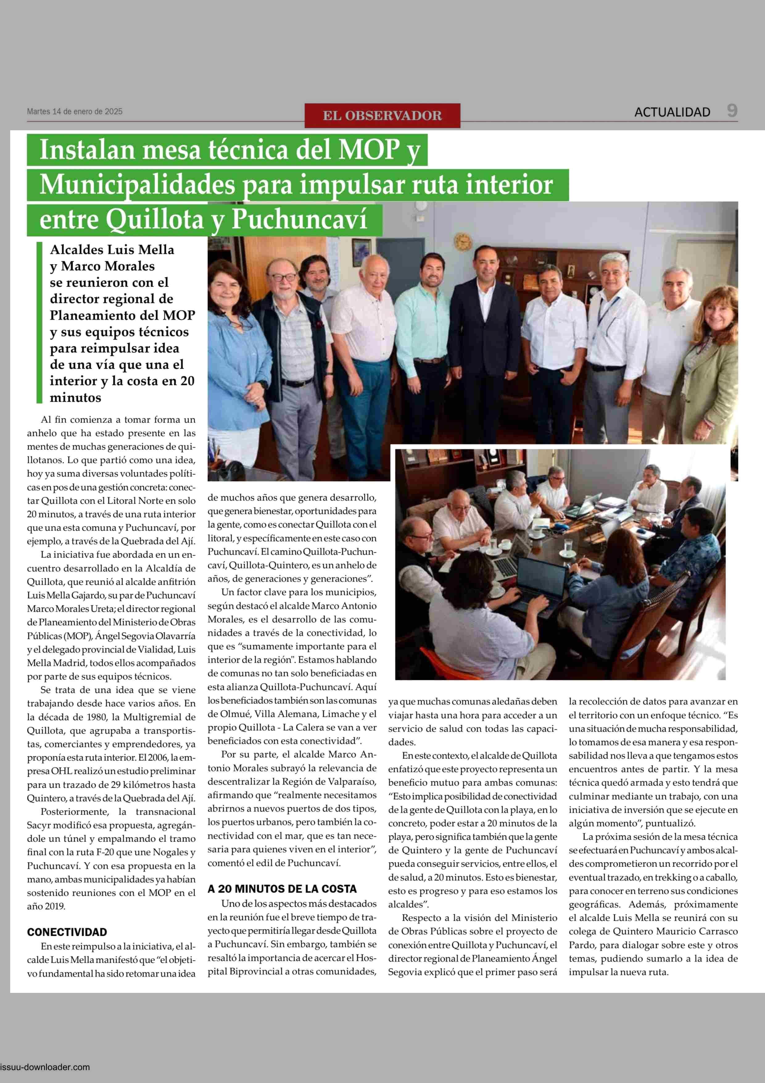 Instalan mesa técnica del MOP y Municipalidades para impulsar ruta interior entre Quillota y Puchuncaví 14-01-2025 El Observador Vespertino |