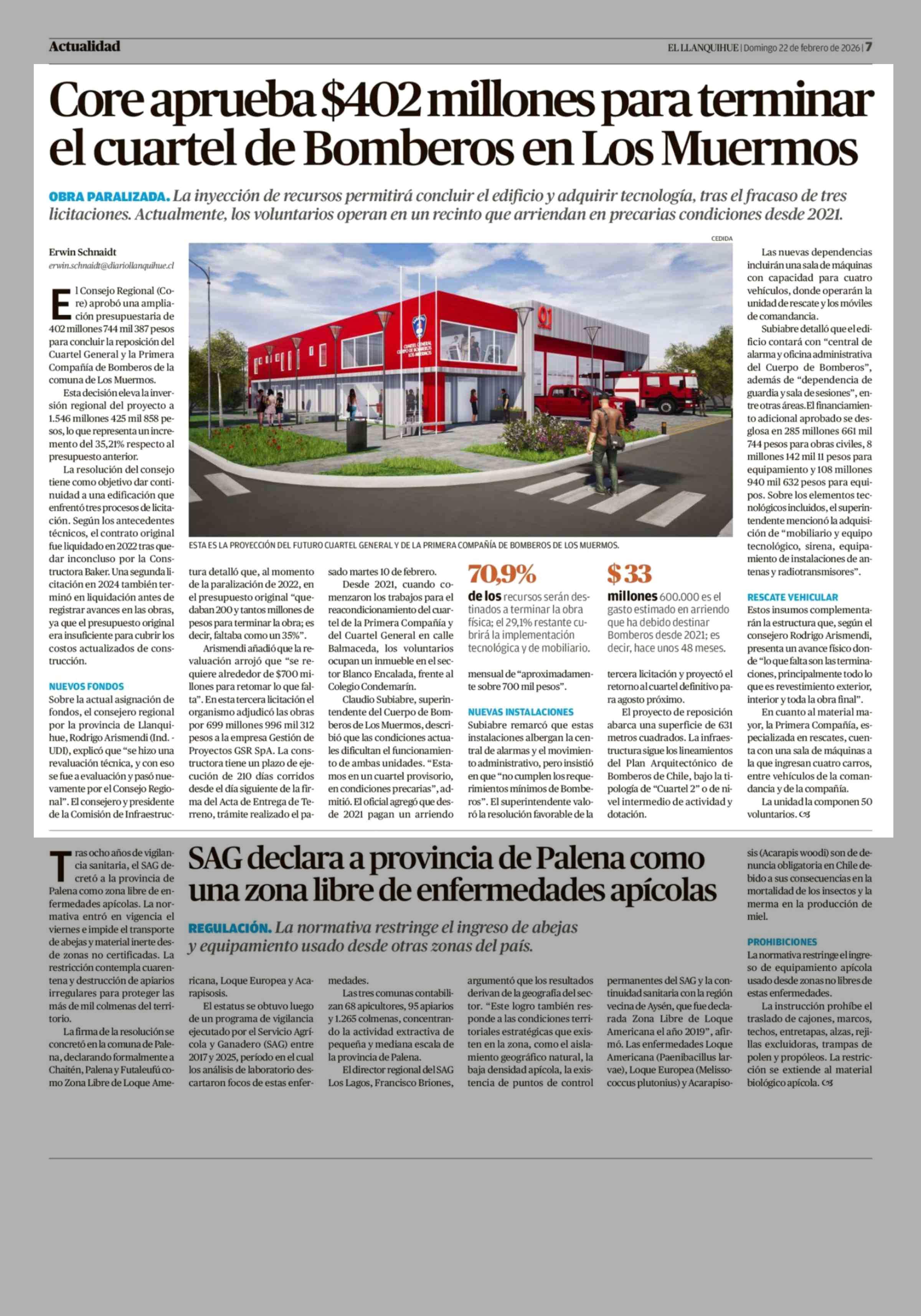 Título: Core aprueba $402 millones para terminar el cuartel de Bomberos en Los Muermos