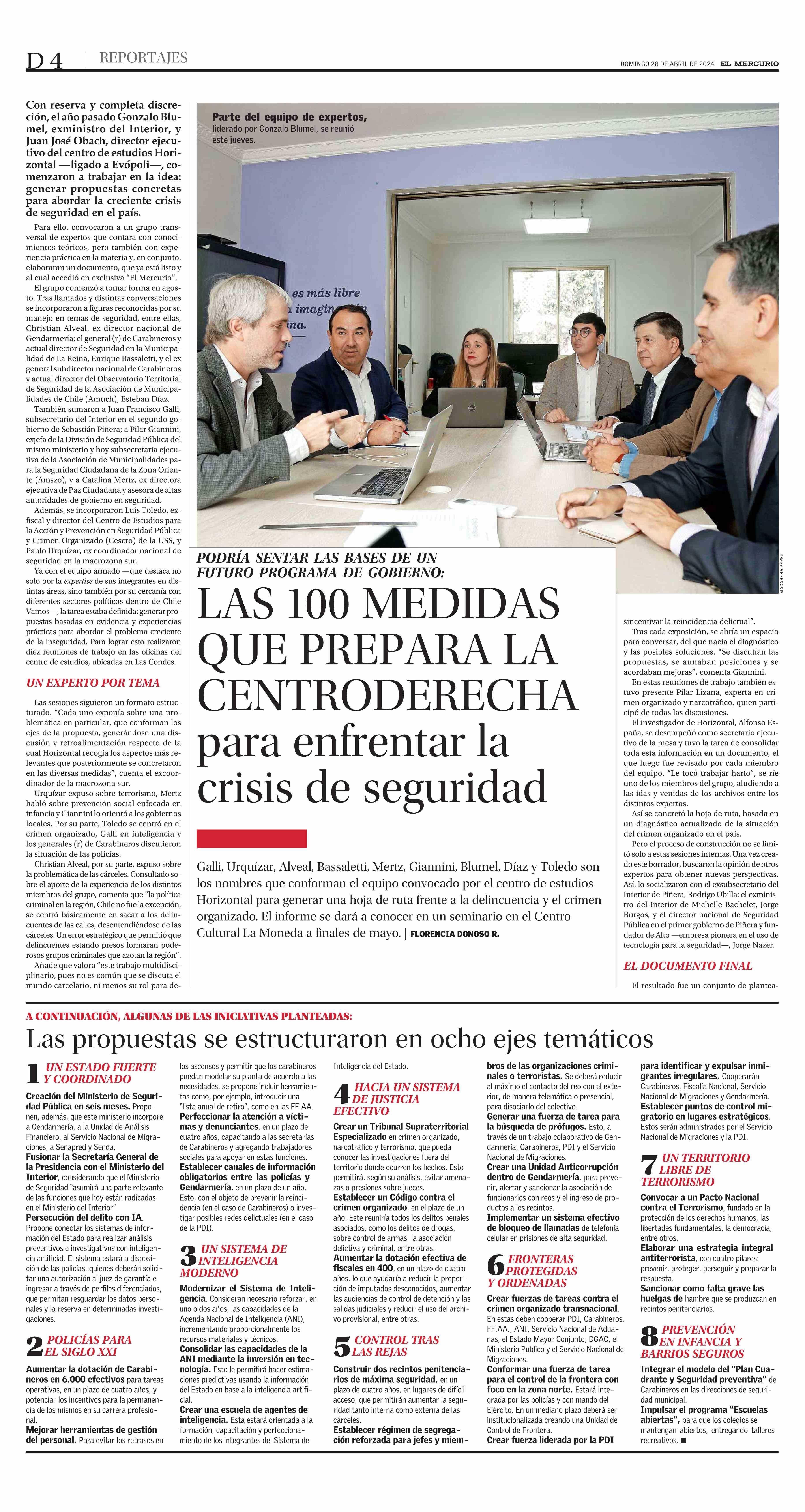 LAS 100 MEDIDAS QUE PREPARA LA CENTRODERECHA para enfrentar la crisis de seguridad 28-04-2024 El Mercurio |
