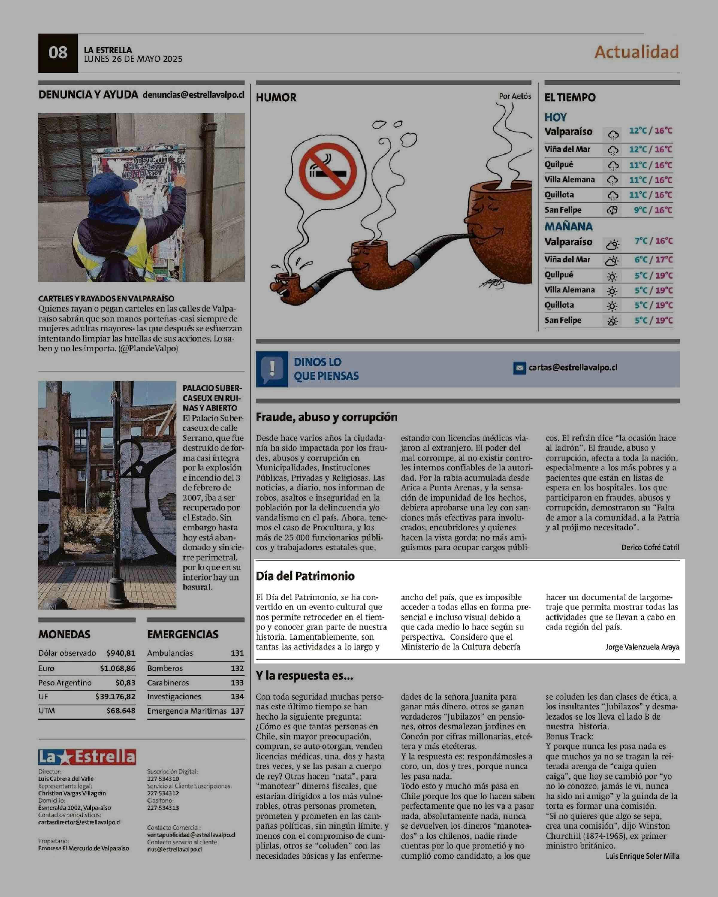 CARTAS: Día del Patrimonio 26-05-2025 La Estrella de Valparaíso |