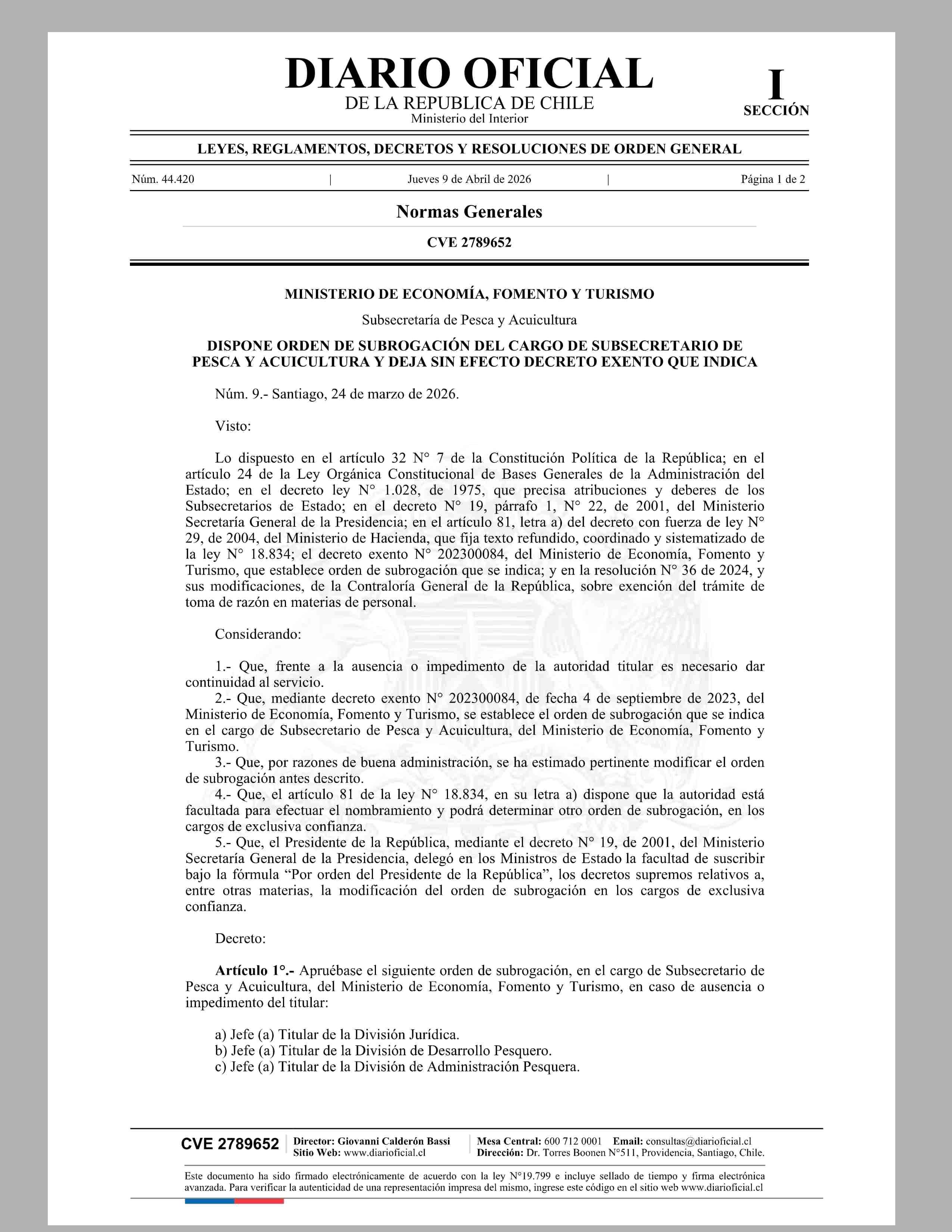 MINISTERIO DE ECONOMÍA, FOMENTO Y TURISMO 09-04-2026 Diario Oficial Edición Electrónica |