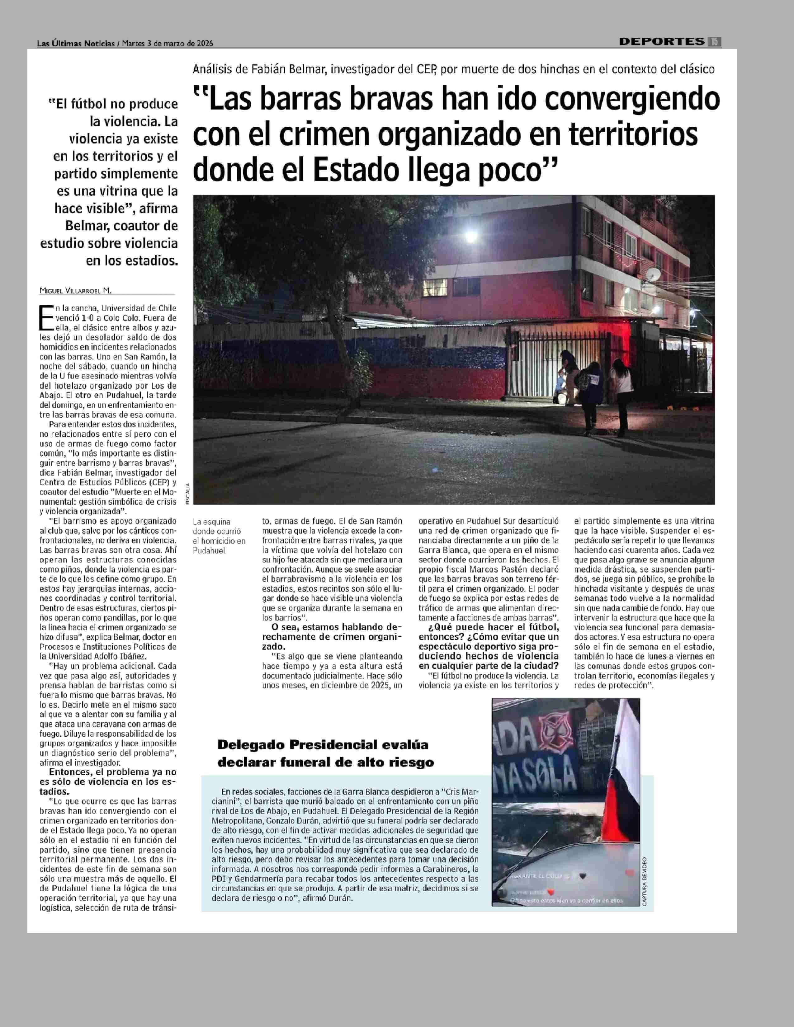 Título: "Las barras bravas han ido convergiendo con el crimen organizado en territorios donde el Estado llega poco"