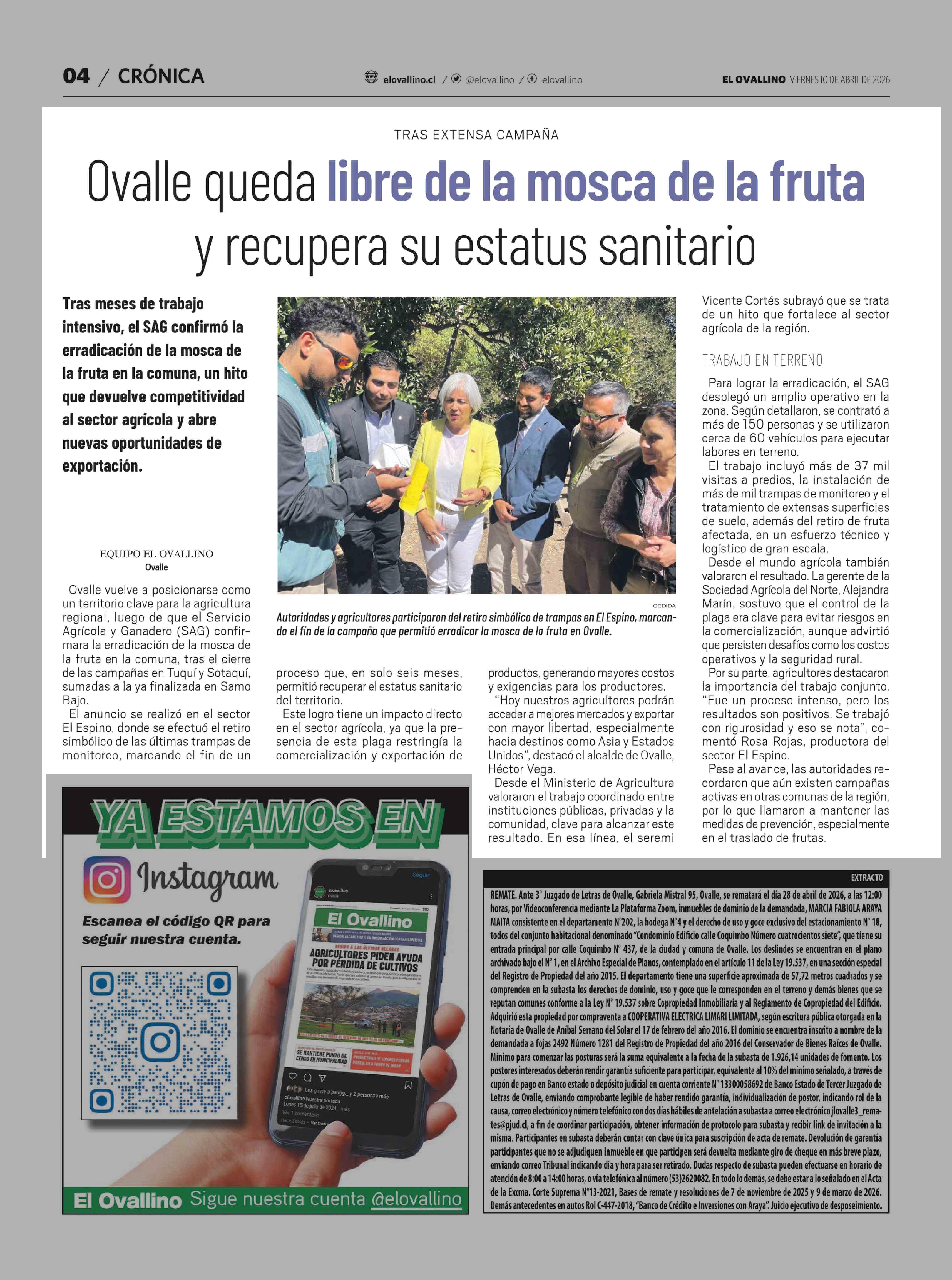Ovalle queda libre de la mosca de la fruta y recupera su estatus sanitario 10-04-2026 El Ovallino |