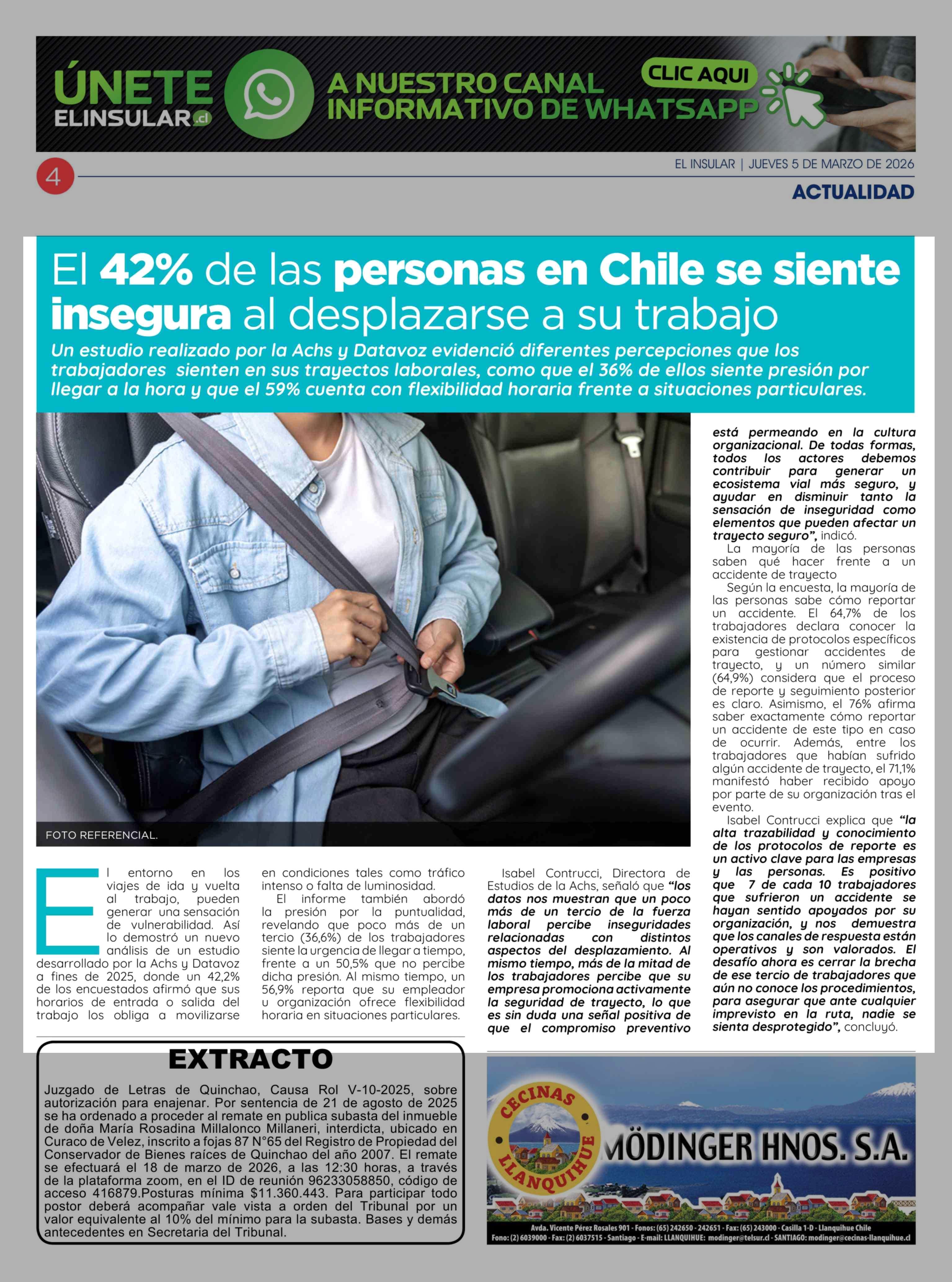 Título: El 42% de las personas en Chile se siente insegura al desplazarse a su trabajo