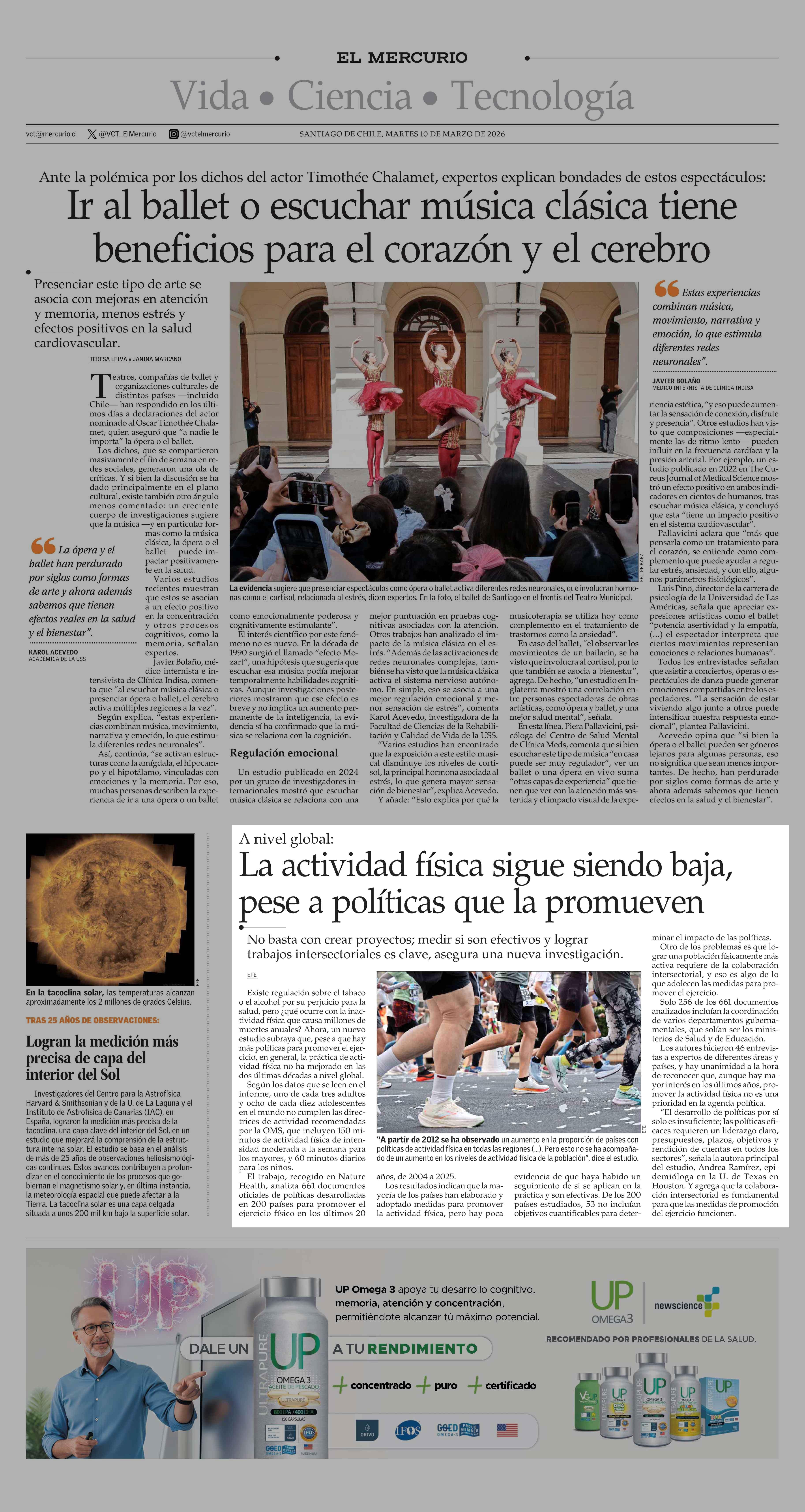 La actividad física sigue siendo baja, pese a políticas que la promueven 10-03-2026 El Mercurio |