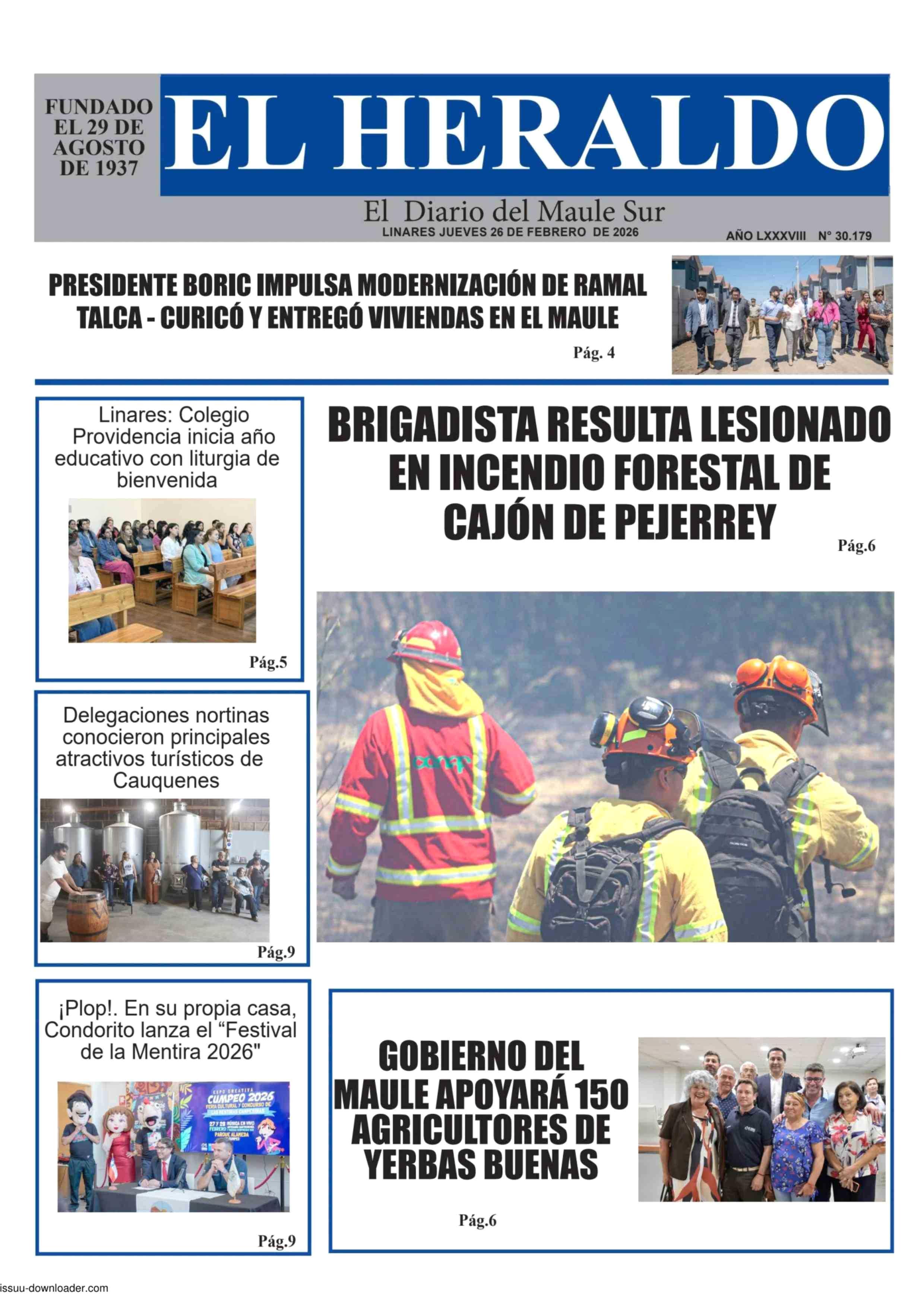 PORTADA EL HERALDO DE LINARES CHILE 26-02-2026 El Heraldo |