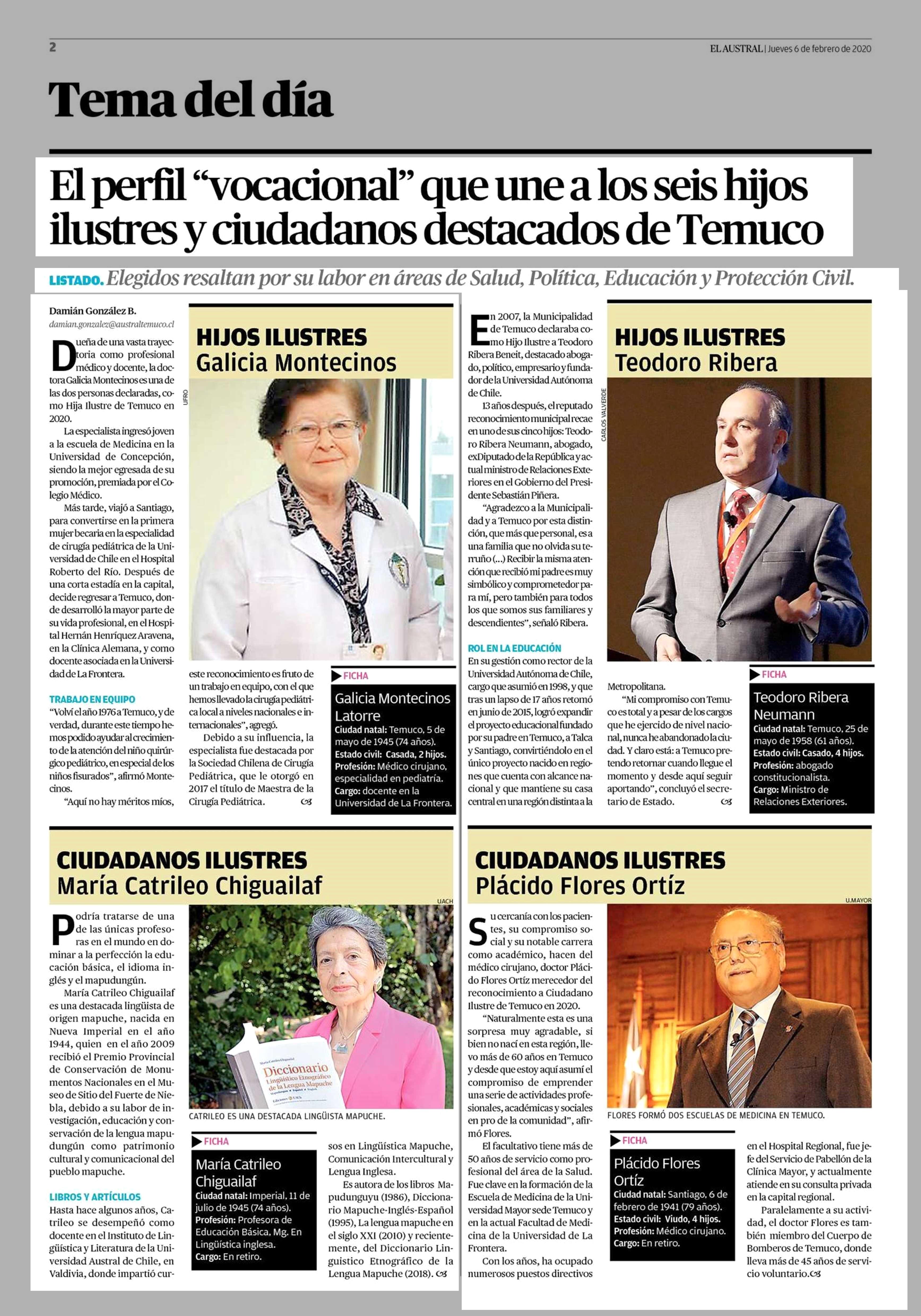 El perfil vocacional” que une a los seis hijos ilustres y ciudadanos destacados de Temuco 06-02-2020 El Austral de la Araucanía |