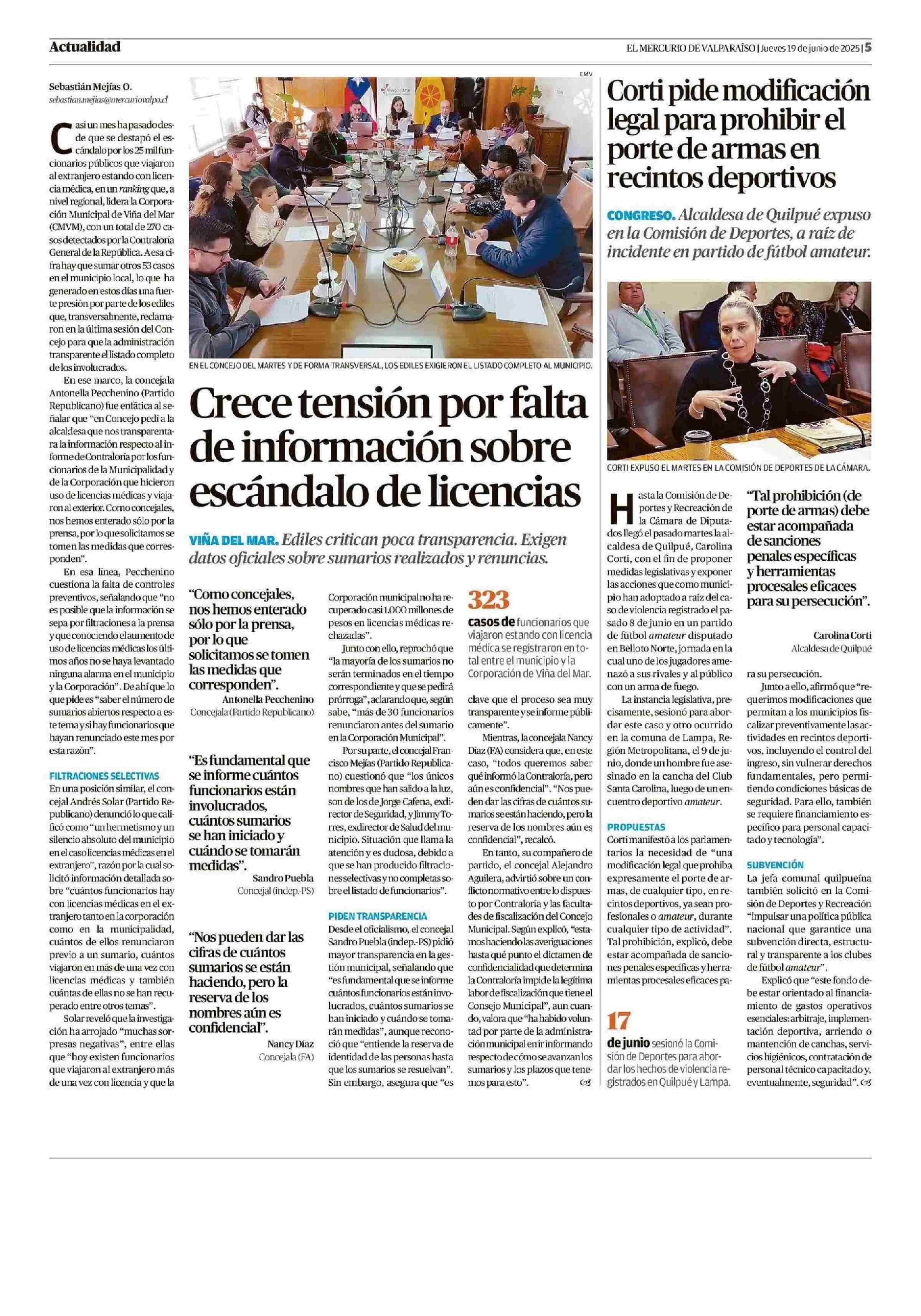 Crece tensión por falta escándalo de licencias de información sobre 19-06-2025 El Mercurio de Valparaíso |