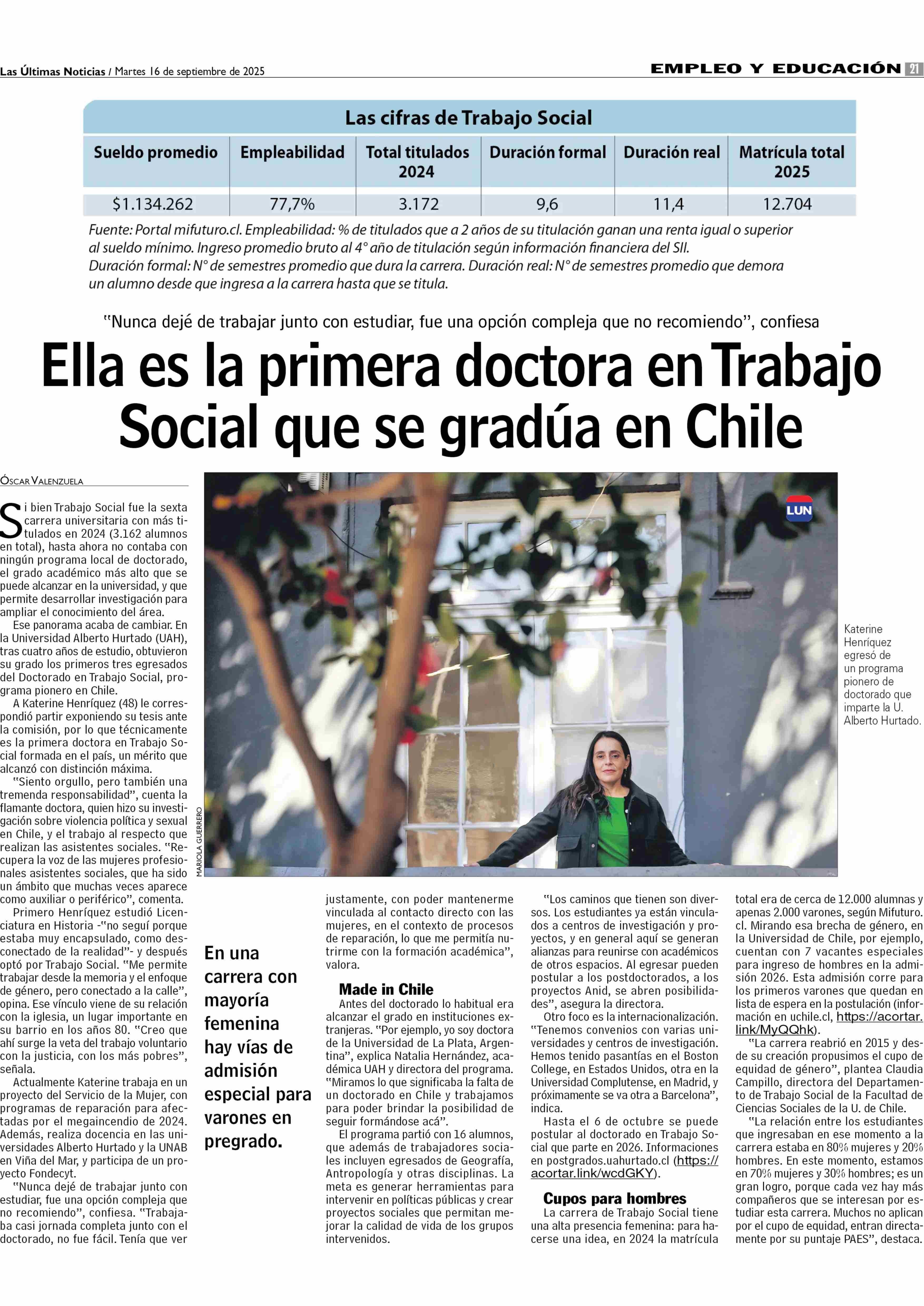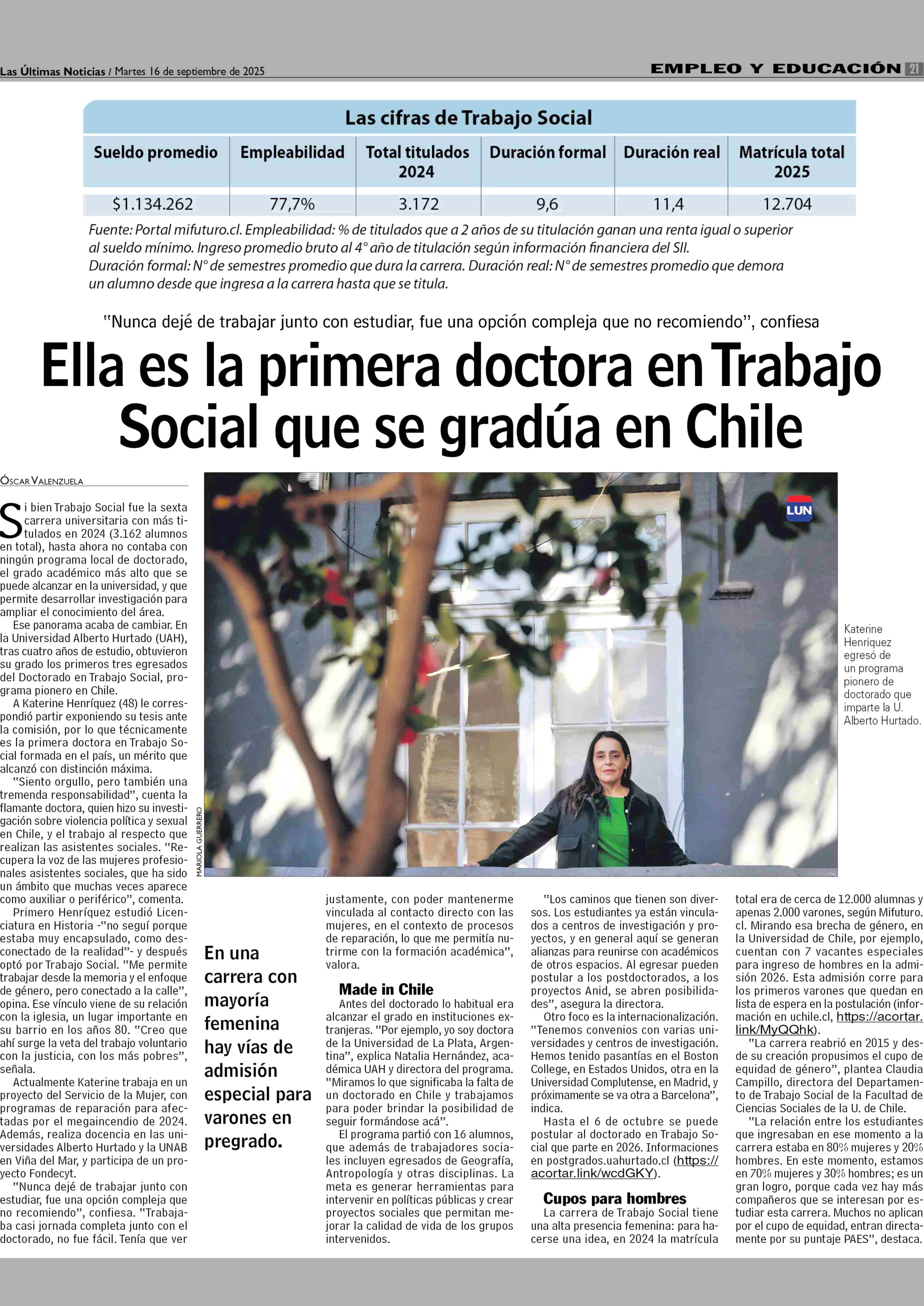 Título: Ella es la primera doctora en Trabajo Social que se gradúa en Chile