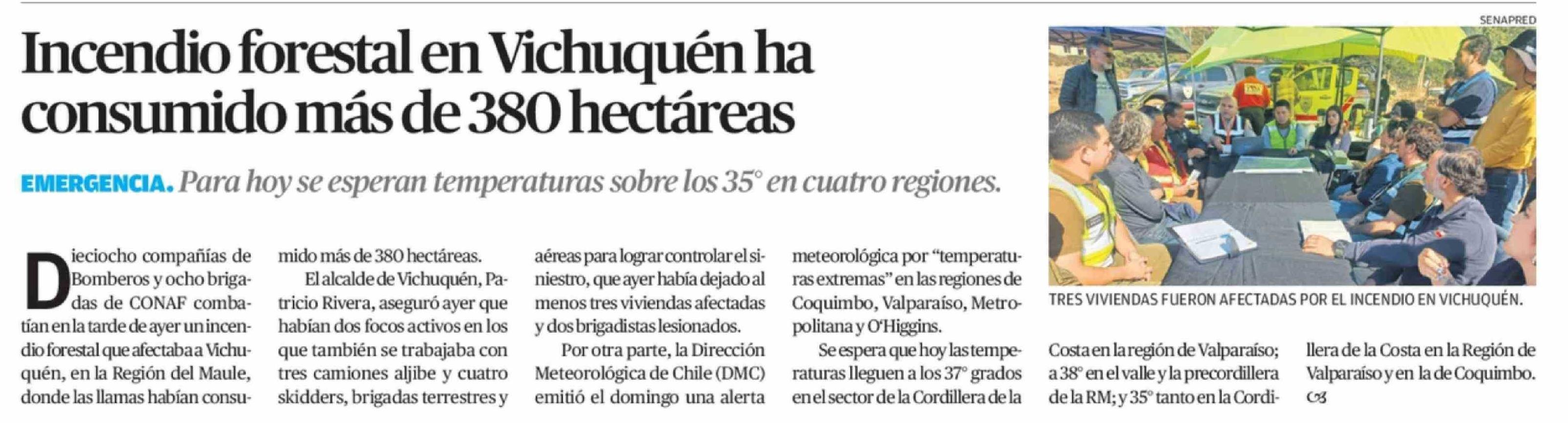 Incendio forestal en Vichuquén ha consumido más de 380 hectáreas 17-02-2026 El Mercurio de Antofagasta |