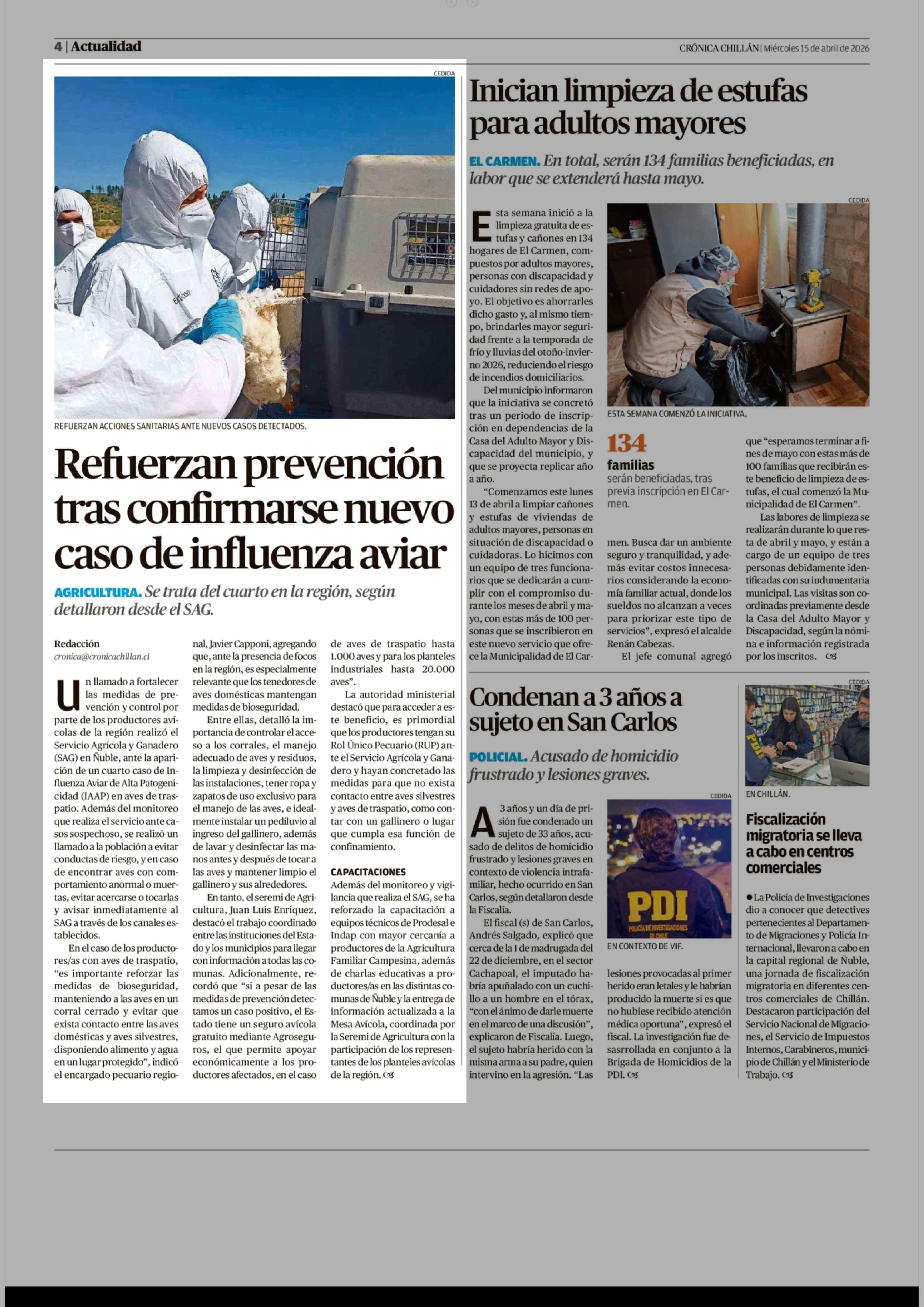 Fecha: 15-04-2026 Sector: Noticia general Región: Región del Ñuble