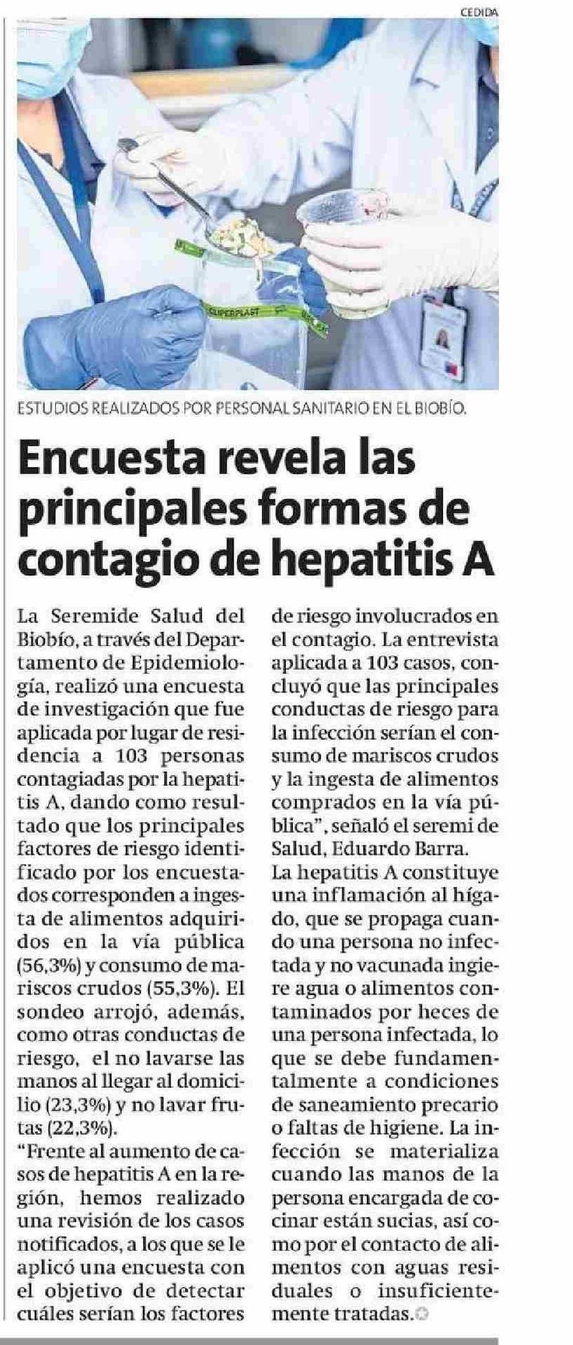 Encuesta revela las principales formas de contagio de hepatitis A 26-04-2025 La Estrella de Concepción |