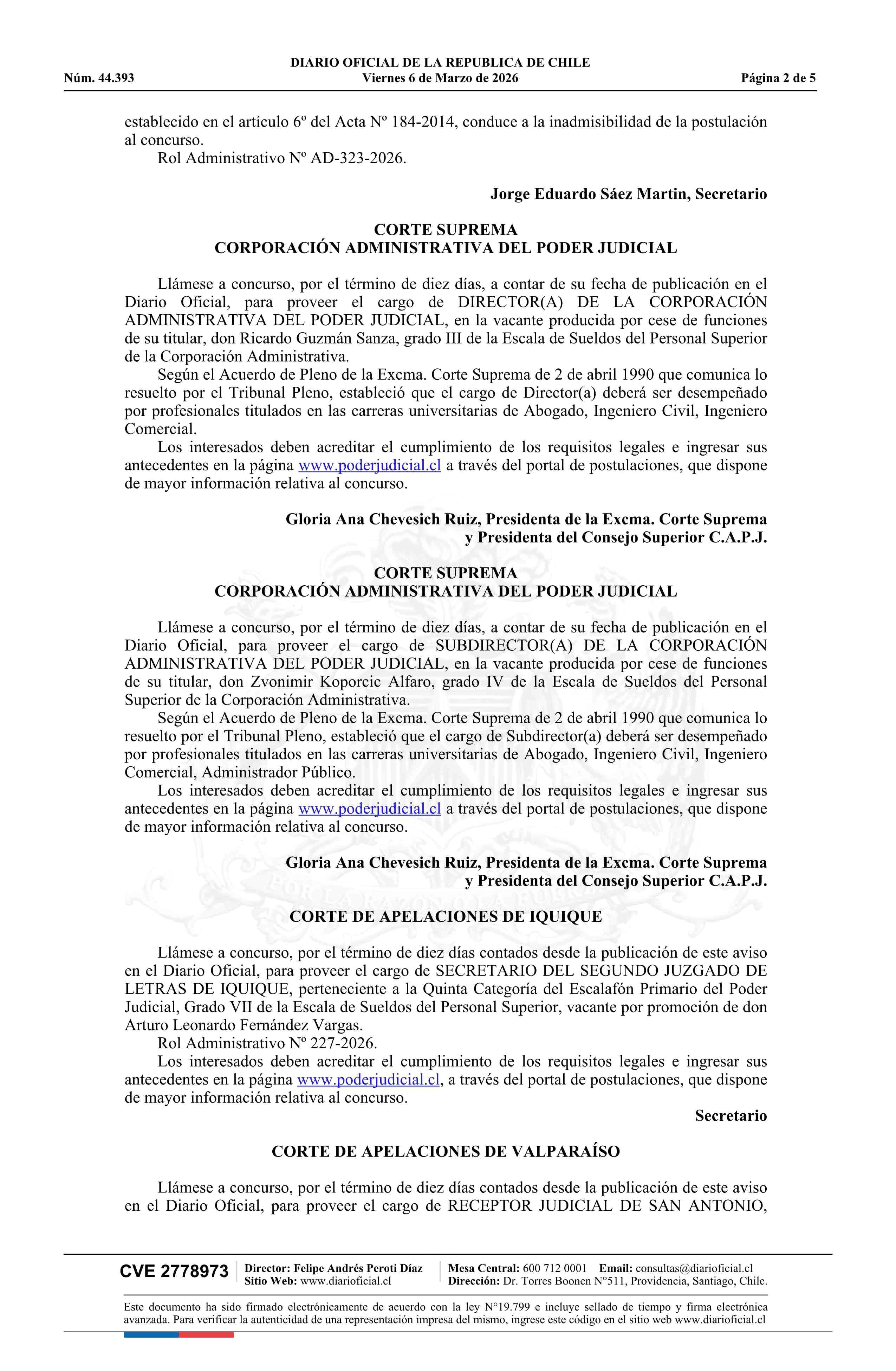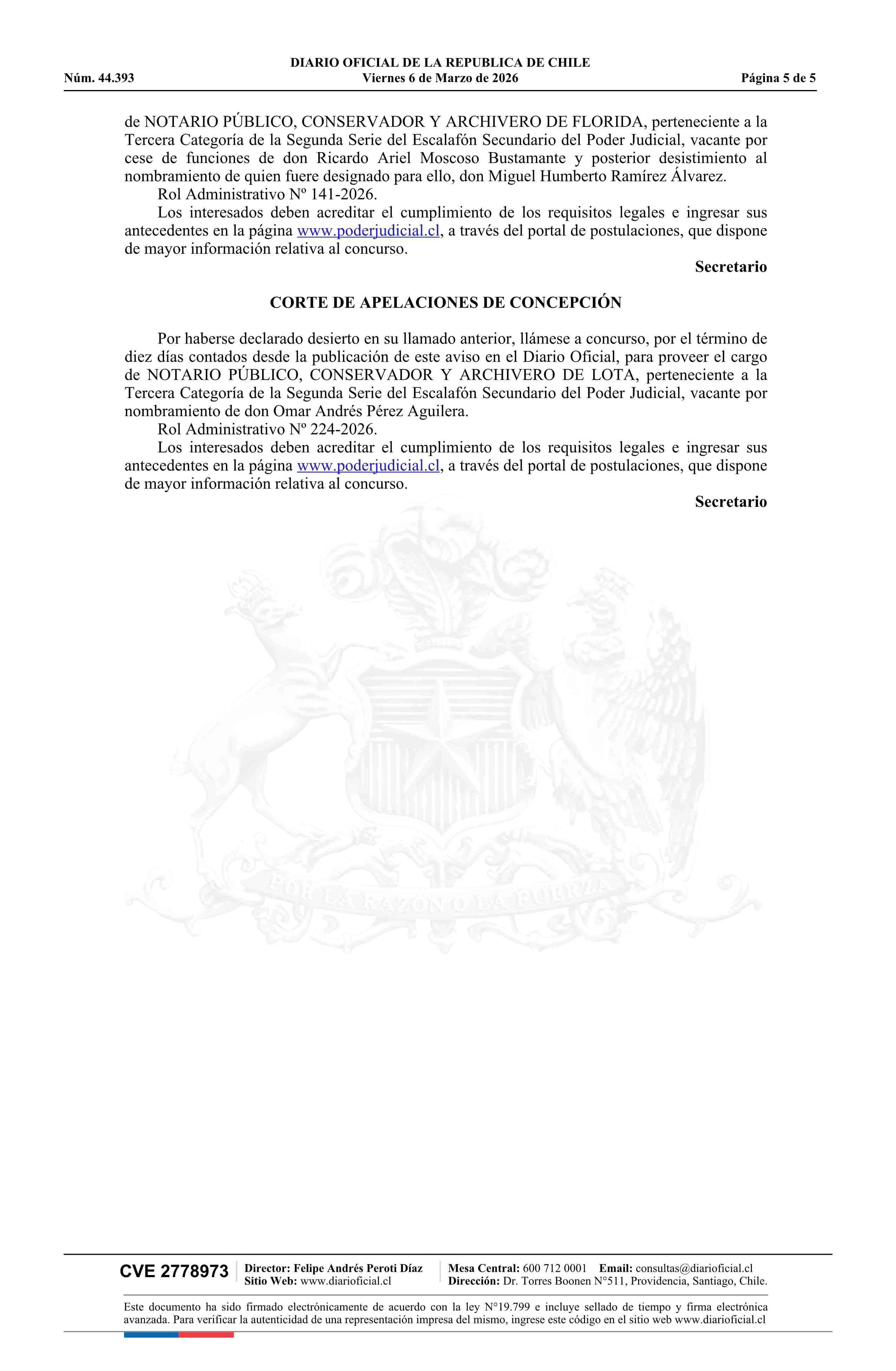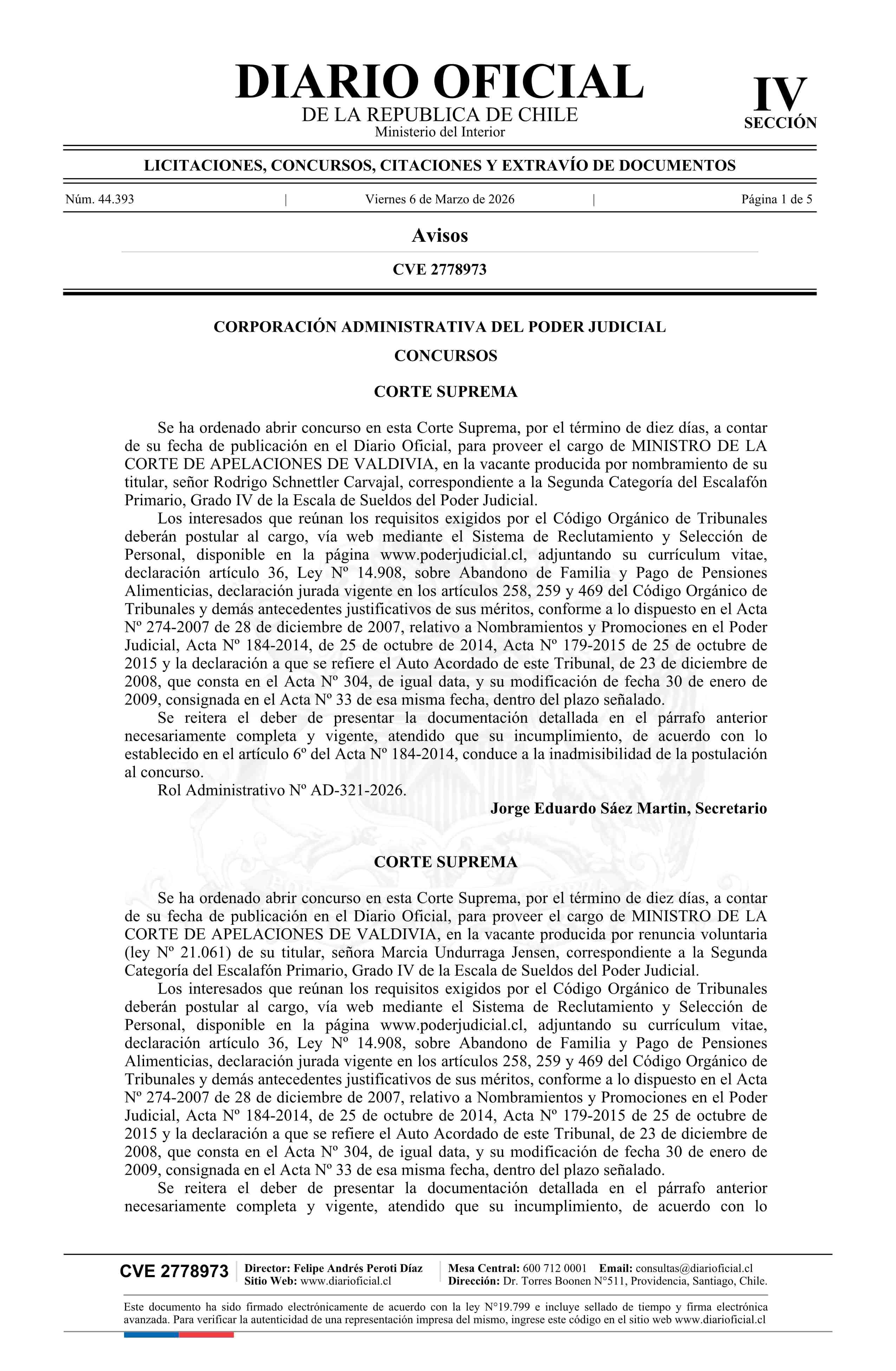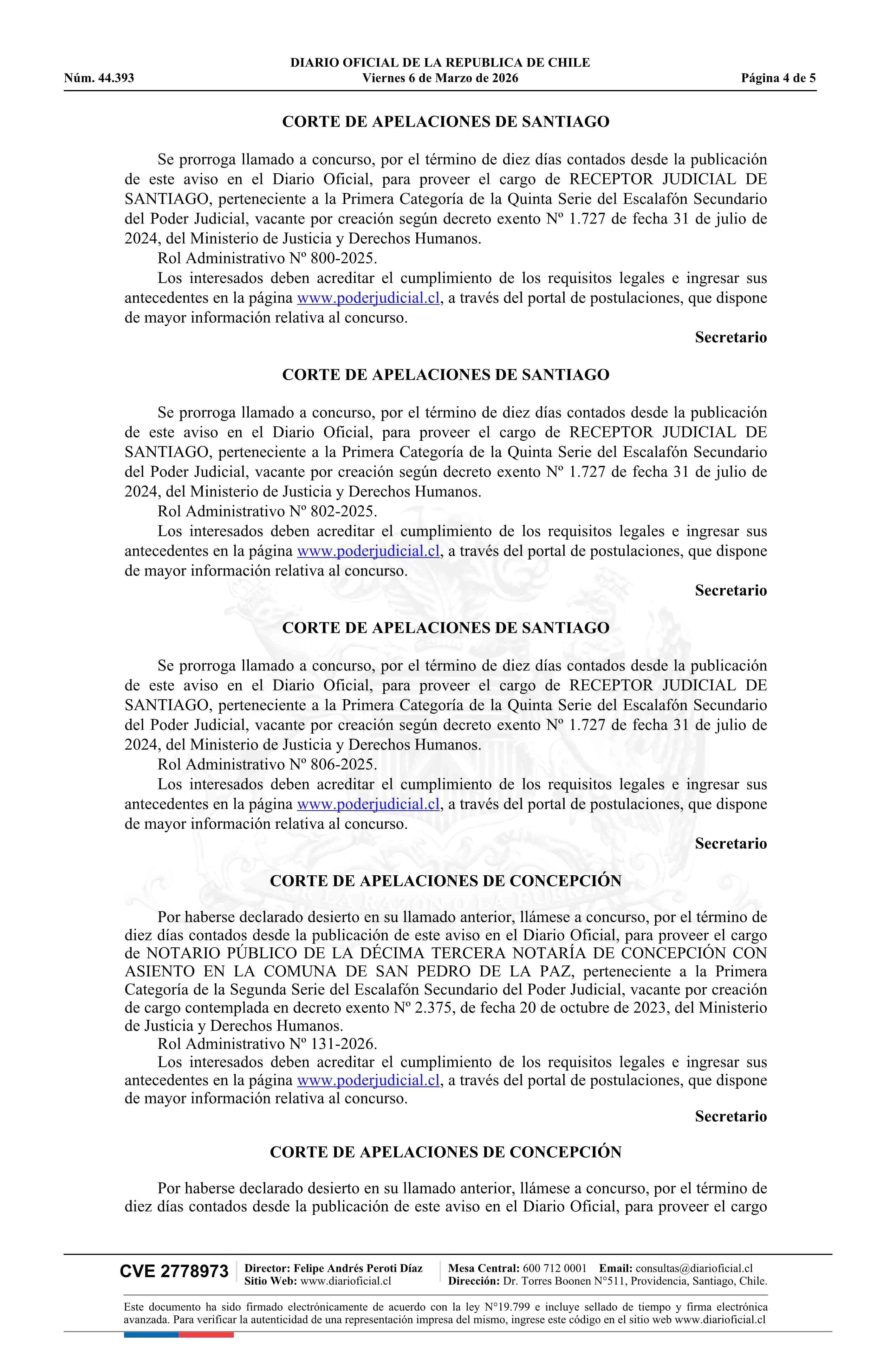 Fuente: Diario Oficial Edición Electrónica (Diario Oficial de Chile - 4 Avisos Destacados) Página(s): 4-8